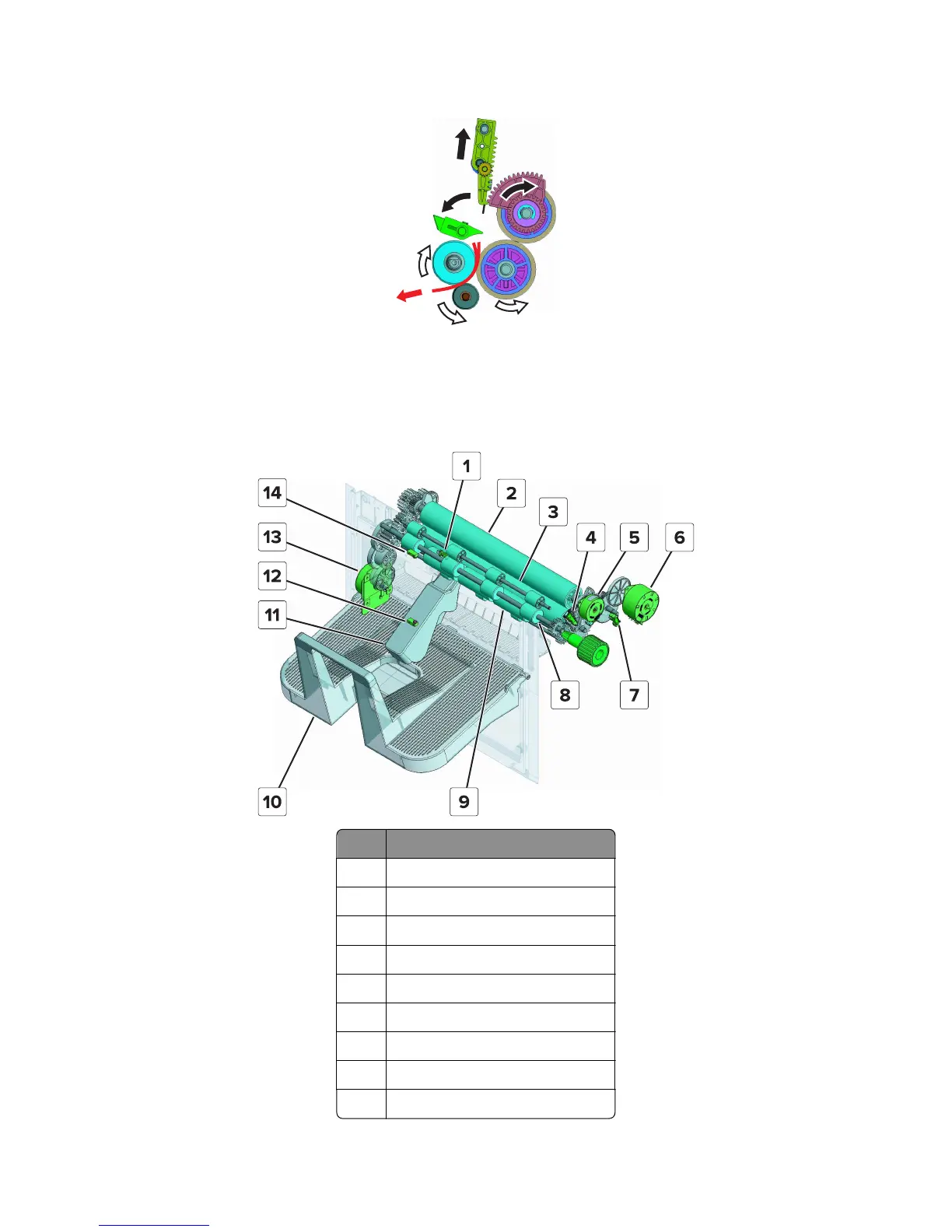 The paper is fed to the trifold roller for the second fold, and then the trifold diverter returns to the home position.