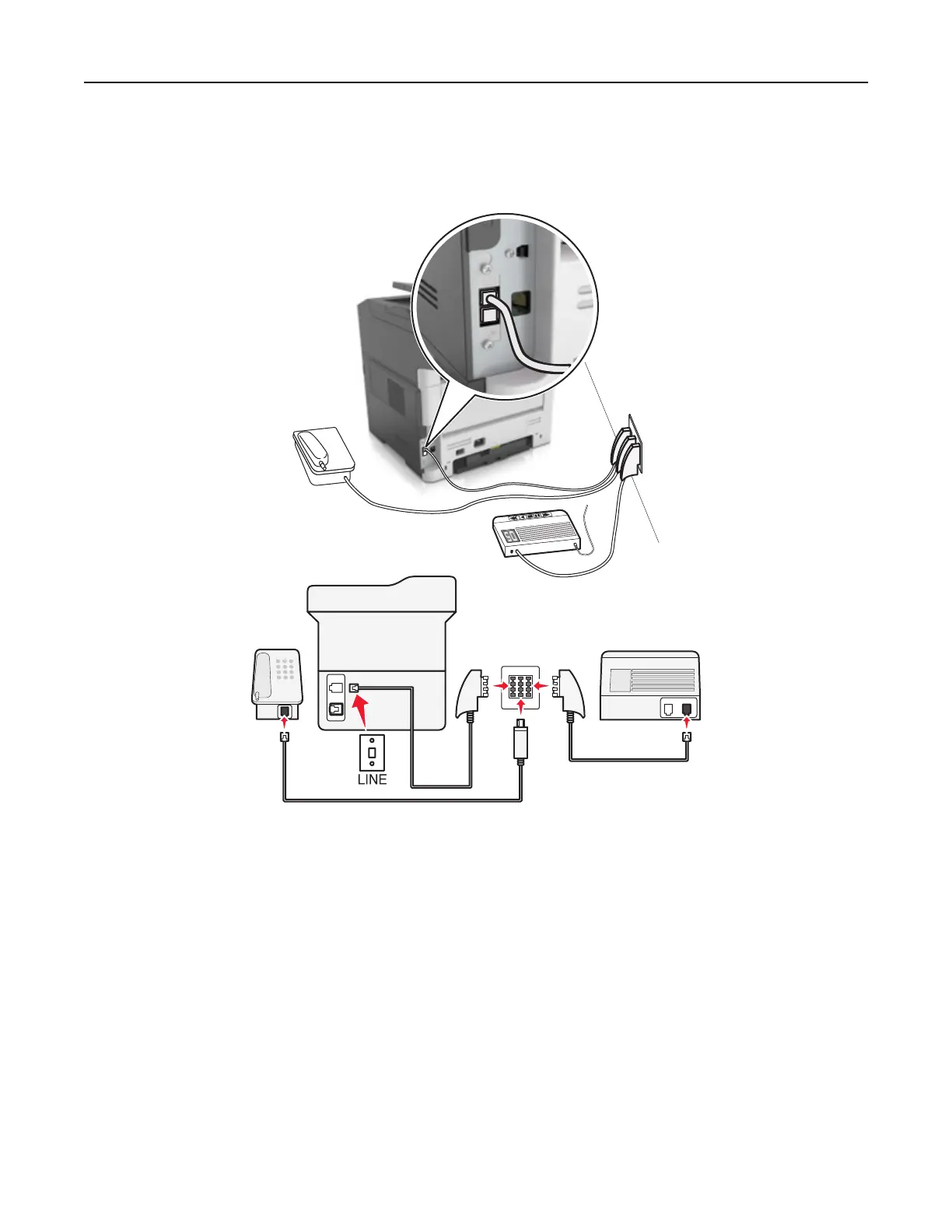 machines. The F port is for telephones. Connect the printer to any of the N ports.