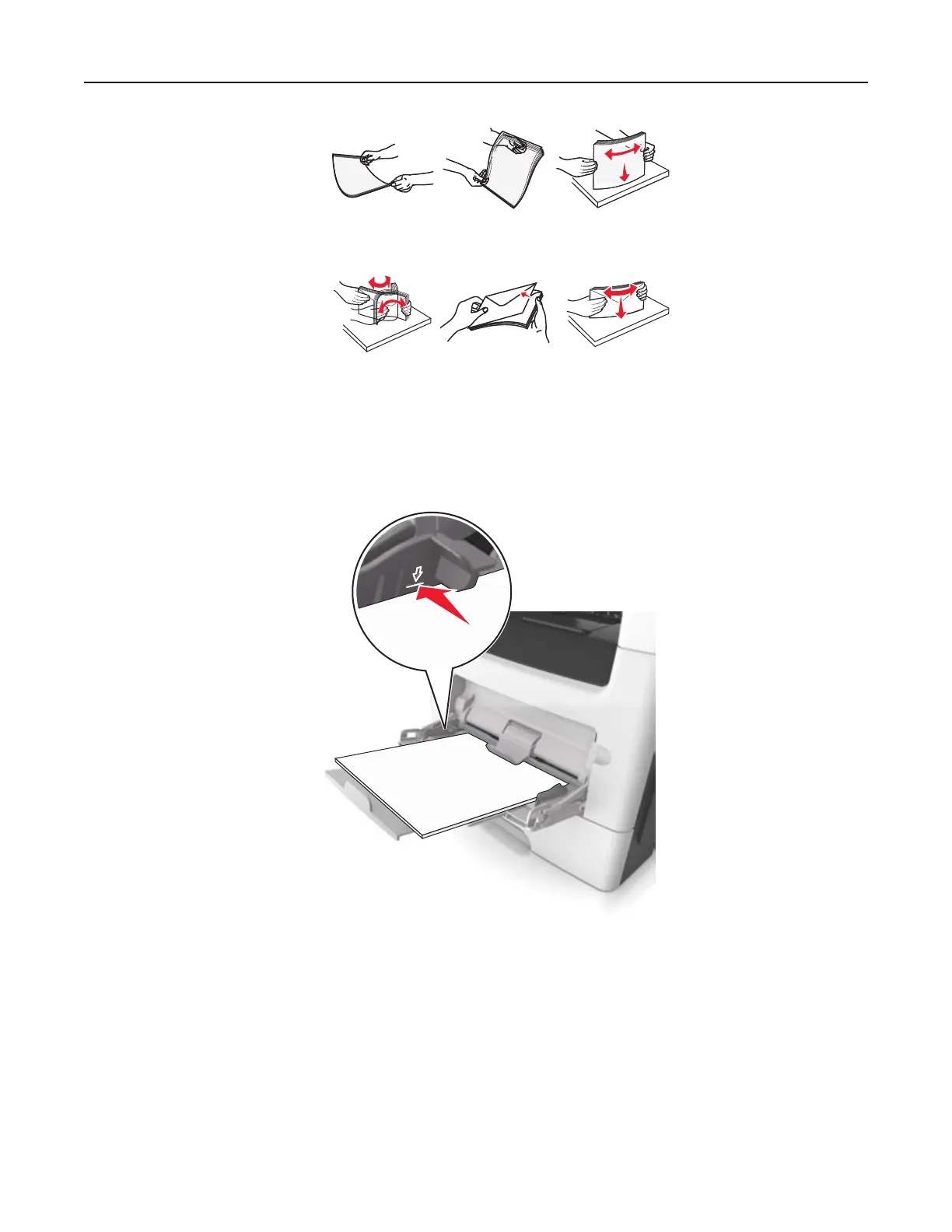 • Flex the stack of envelopes back and forth to loosen them, and then fan them. Straighten the edges on