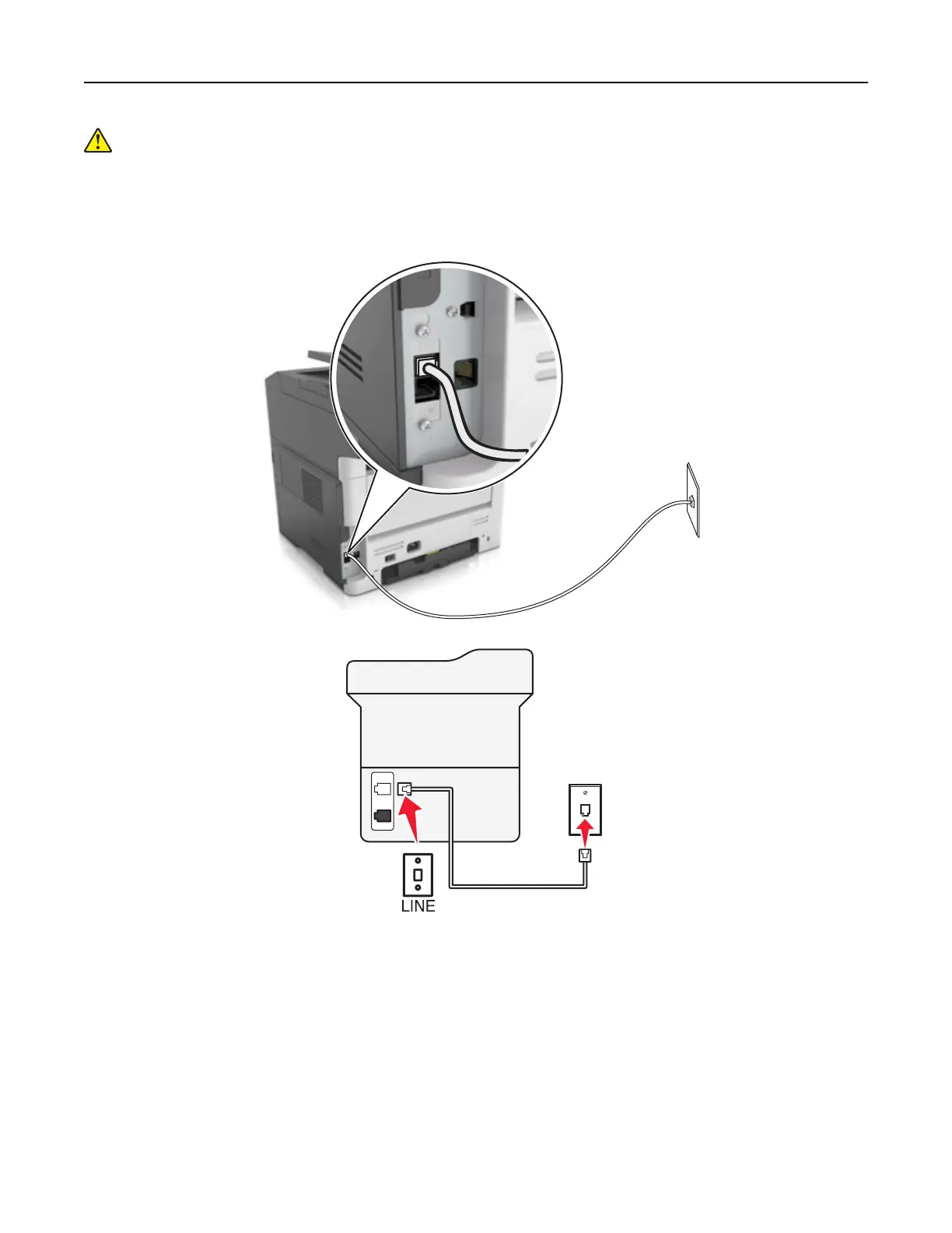 1 Connect one end of the telephone cable to the line port of the printer.