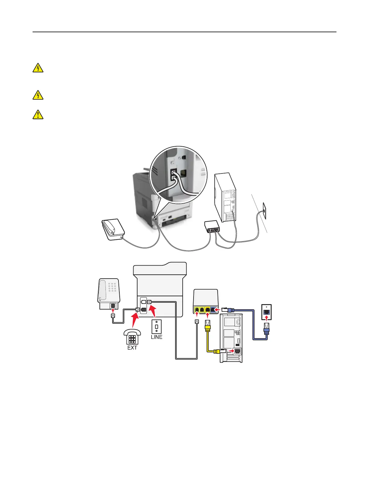 CAUTION—SHOCK HAZARD: To avoid the risk of electrical shock, do not use the fax feature during a