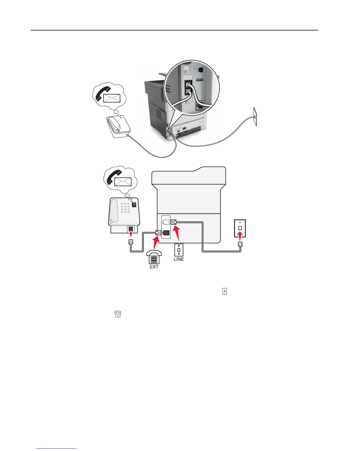 Setup 3: Printer is sharing the line with a telephone subscribed to voice mail service