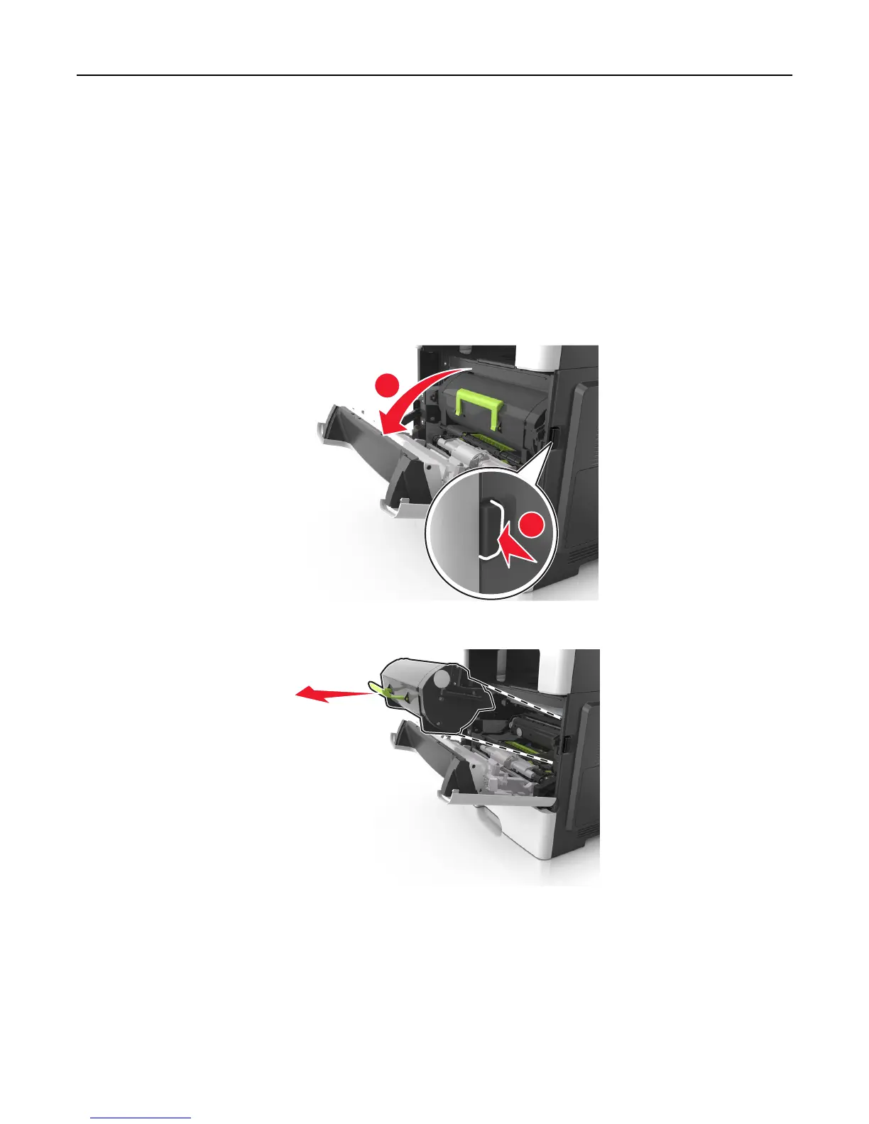 2 Pull the toner cartridge out using the handle.
