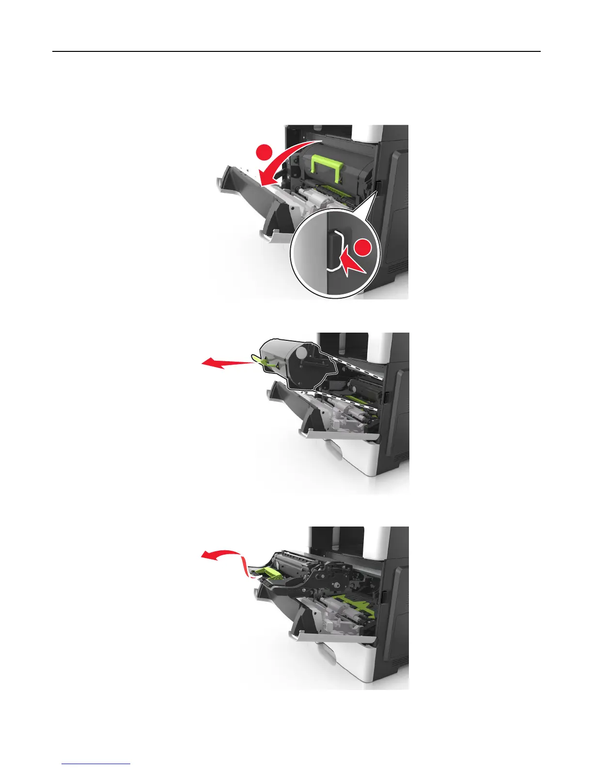 3 Lift the green handle, and then pull the imaging unit out of the printer.
