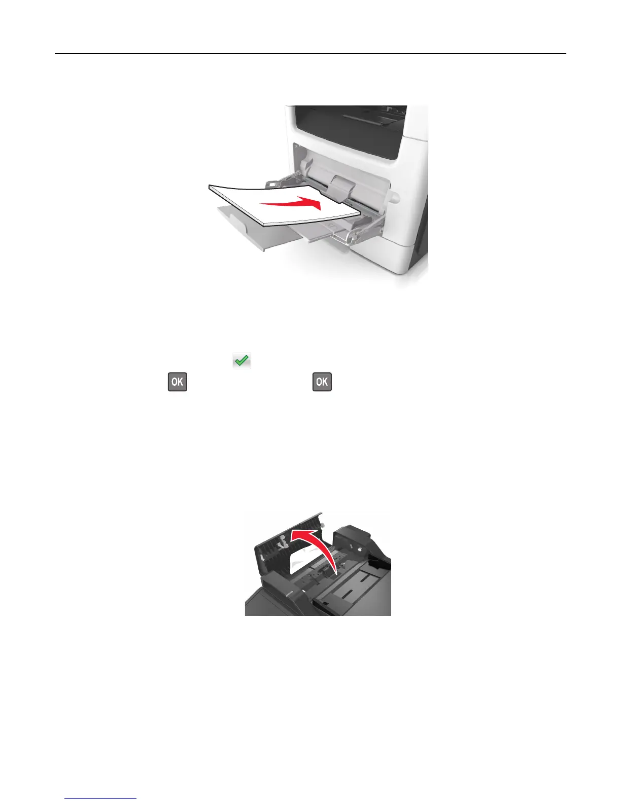 4 From the printer control panel, touch to clear the message and continue printing. For non‑touch‑screen printer