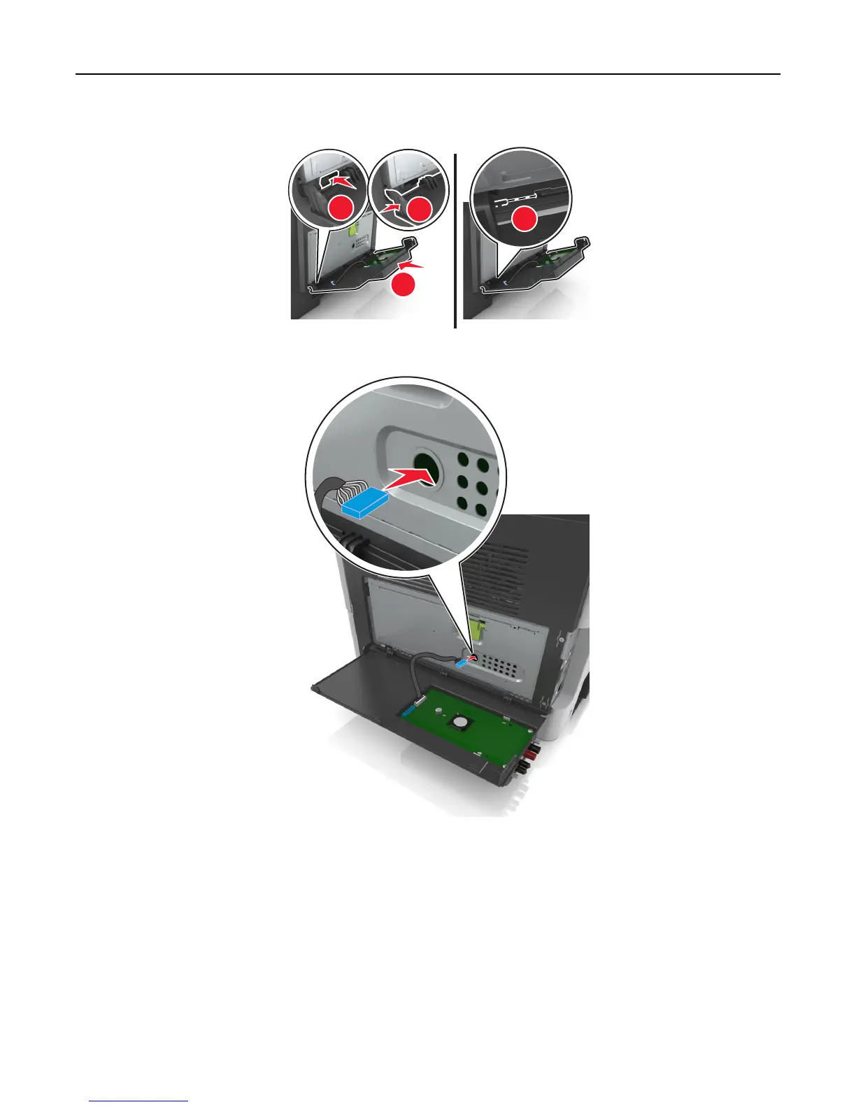 10 Run the ISP cable through the controller board shield.