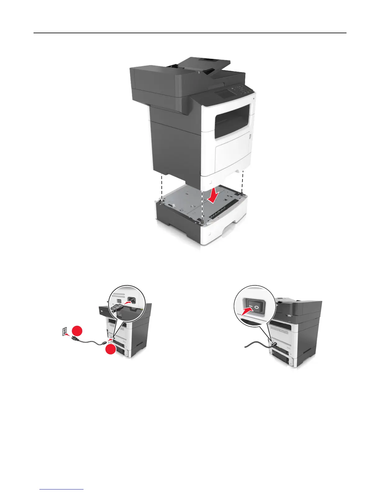 8 Connect the power cord to the printer, then to a properly grounded electrical outlet, and then turn on the printer.