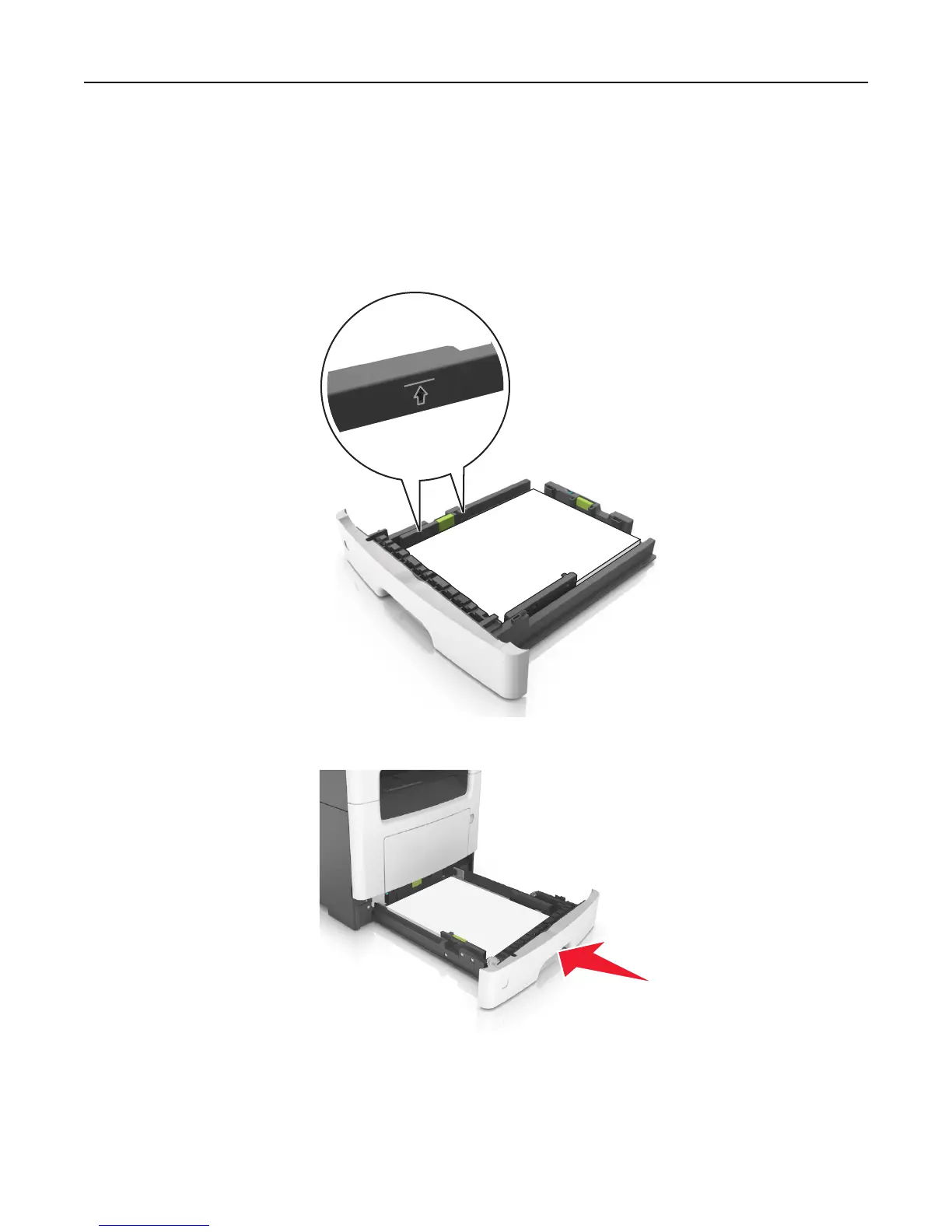 • Load prepunched paper with the holes on the top edge toward the front of the tray.