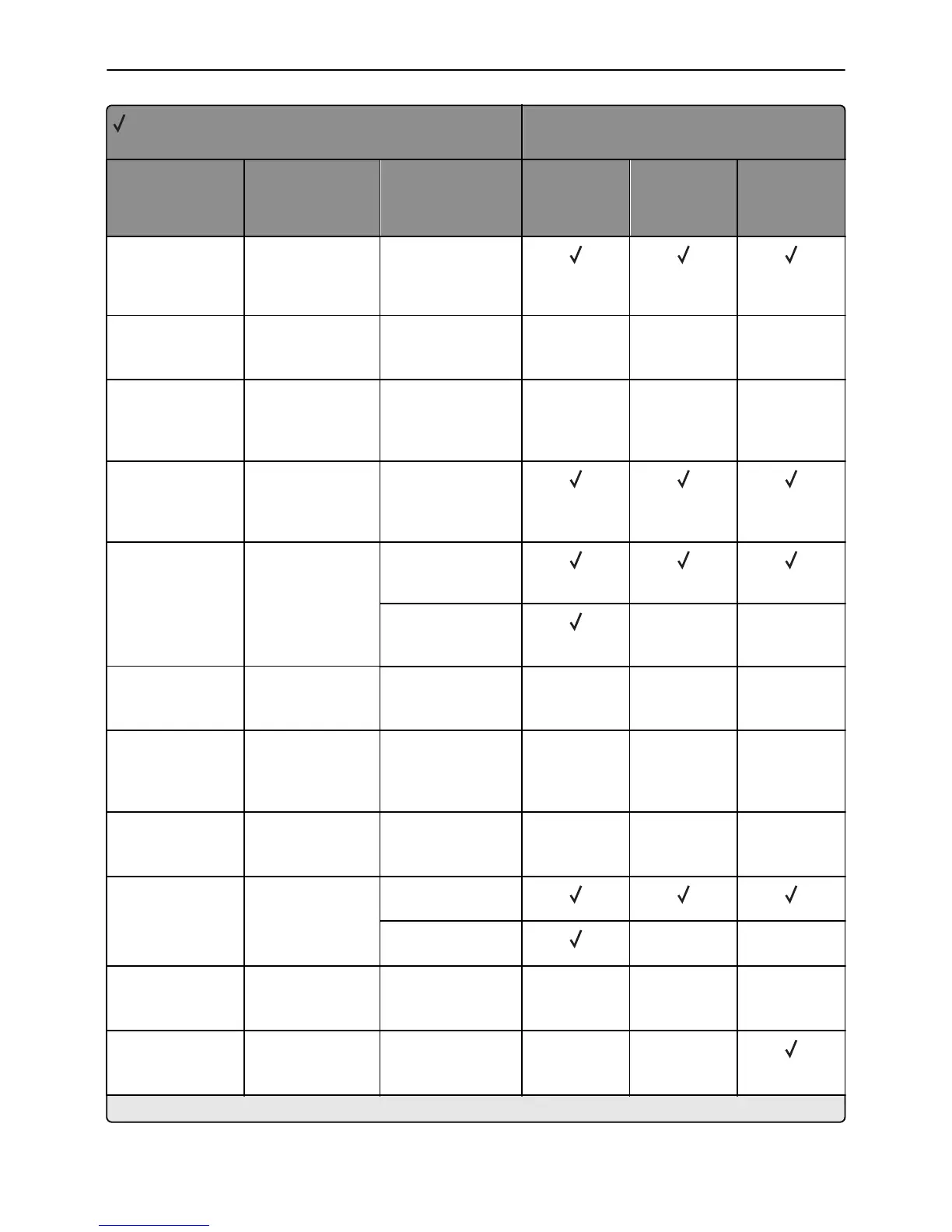 X = Not supported