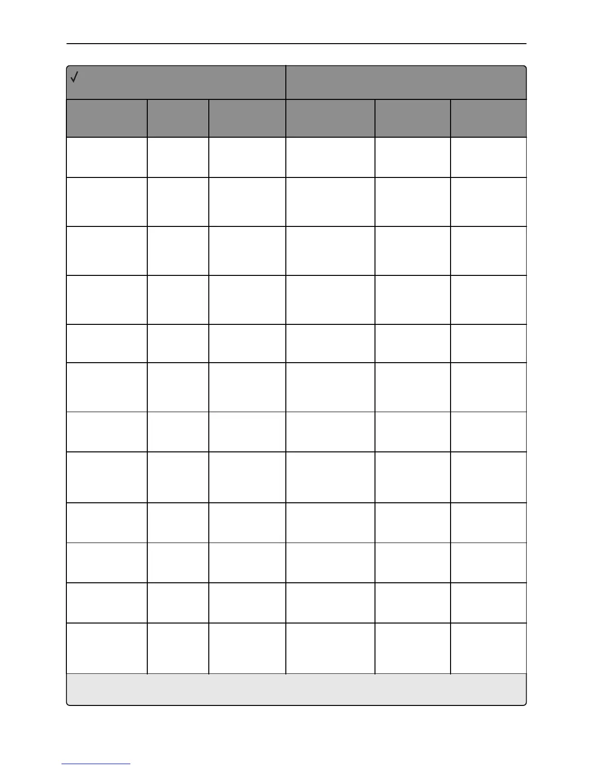 X = Not supported