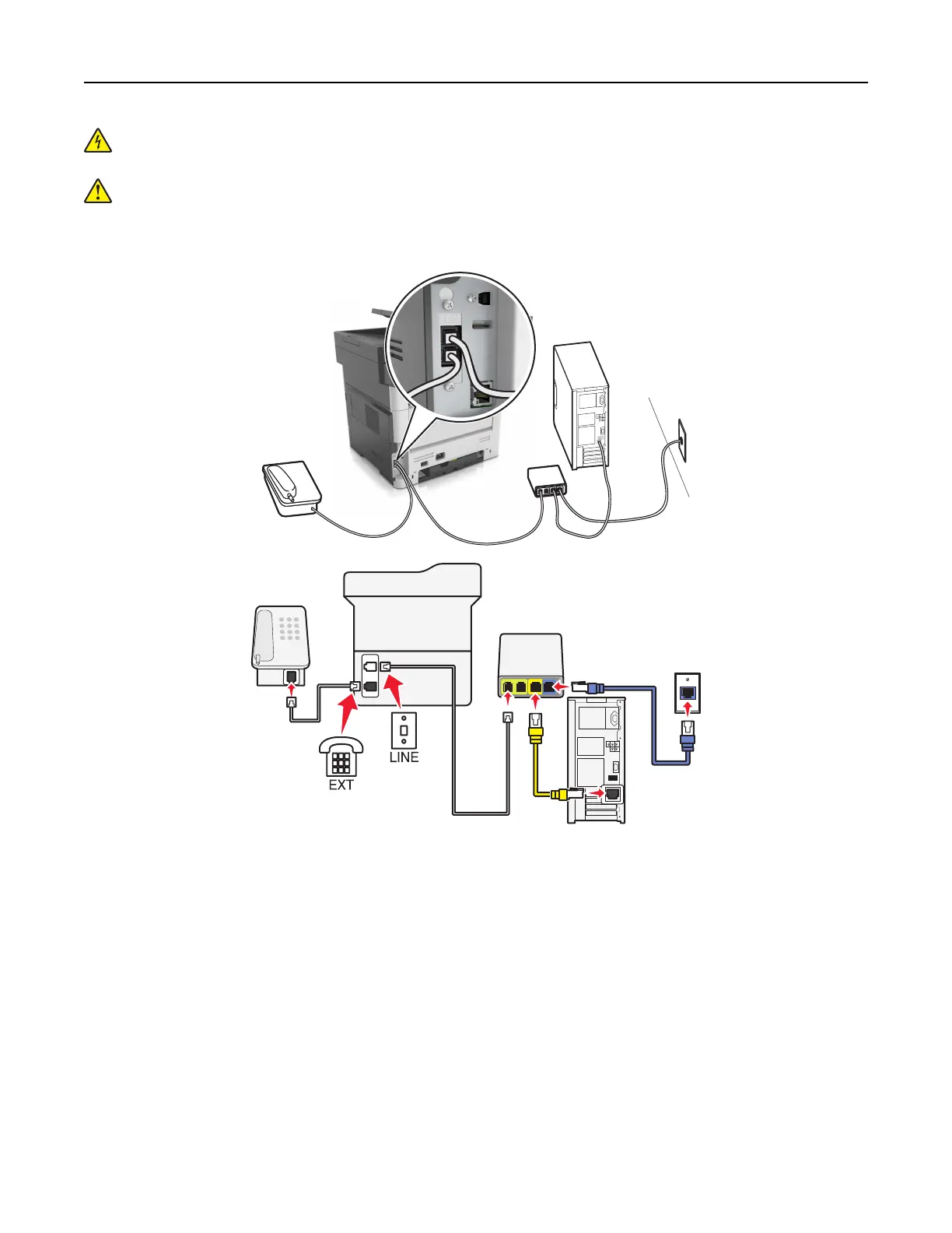CAUTION—SHOCK HAZARD: To avoid the risk of electrical shock, do not use the fax feature during a