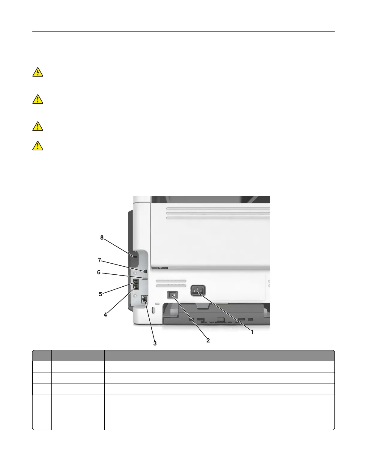 3 Ethernet port Connect the printer to an Ethernet network.
