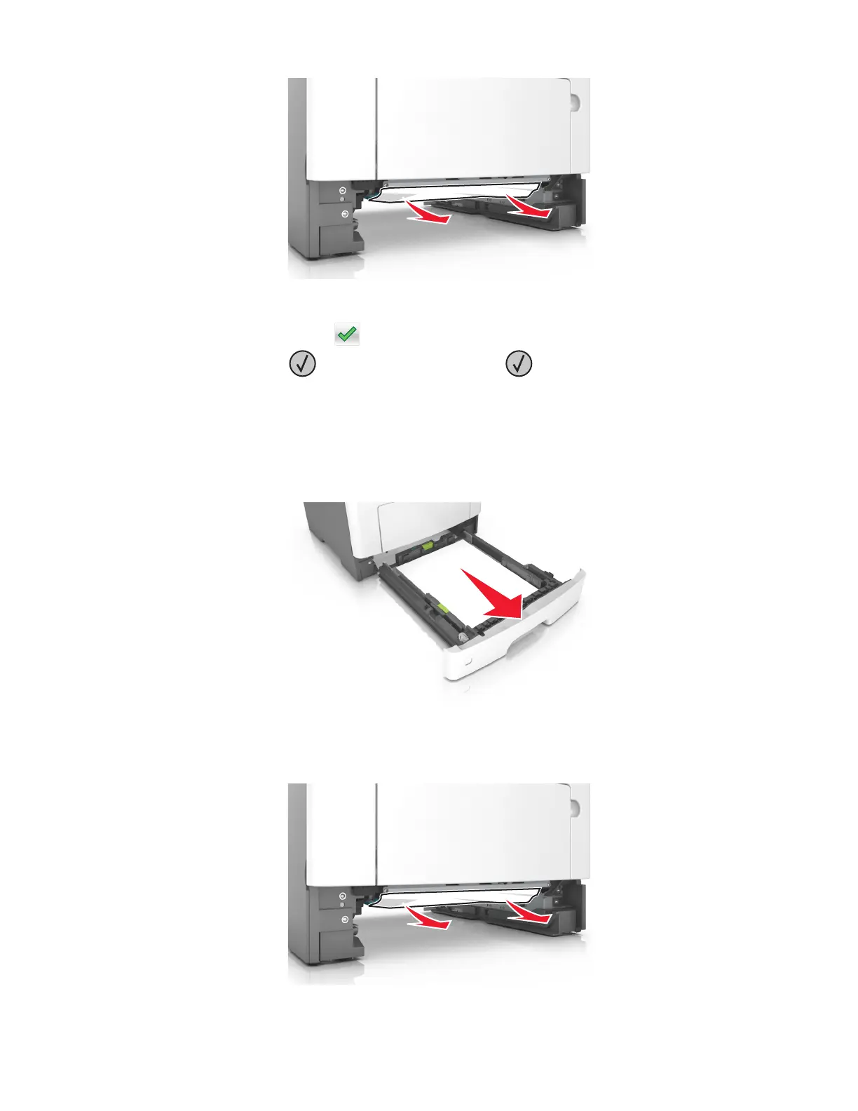 Note: The message on the printer display indicates the tray where the jammed paper is located.