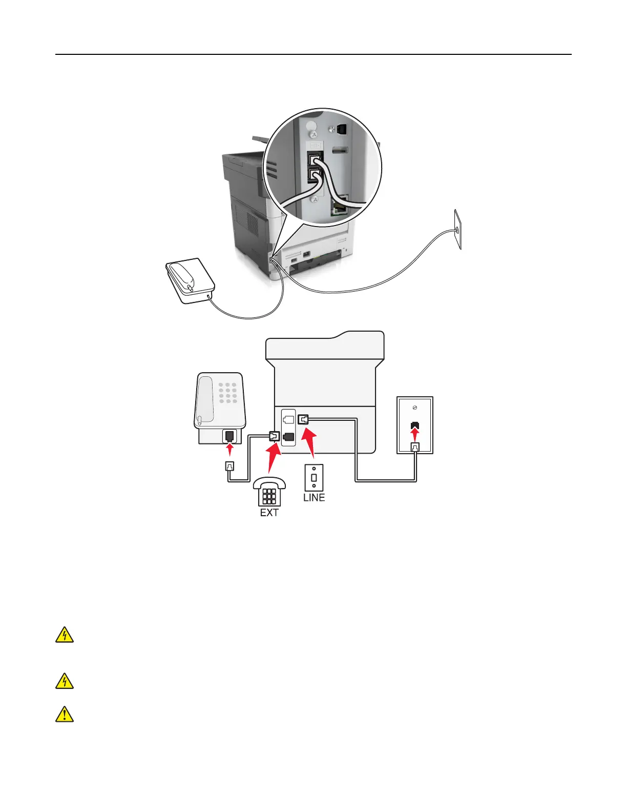 CAUTION—SHOCK HAZARD: To avoid the risk of electrical shock, do not use the fax feature during a