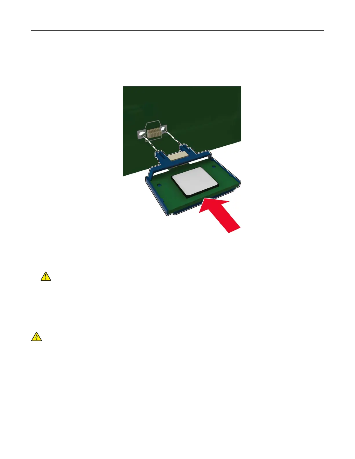 Warning—Potential Damage: Do not touch the connection points along the edge of the card.