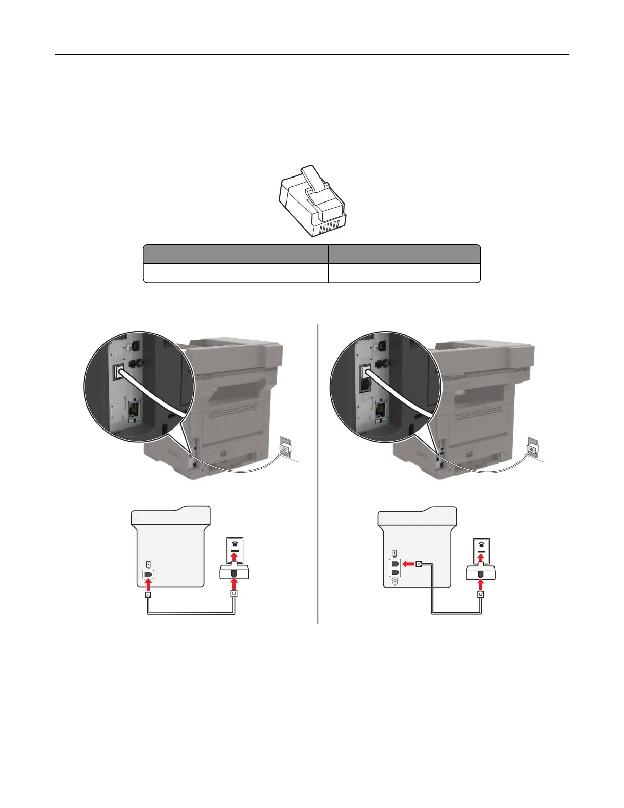 There may be an adapter plug installed in the telephone port of the printer. Do not remove the adapter plug