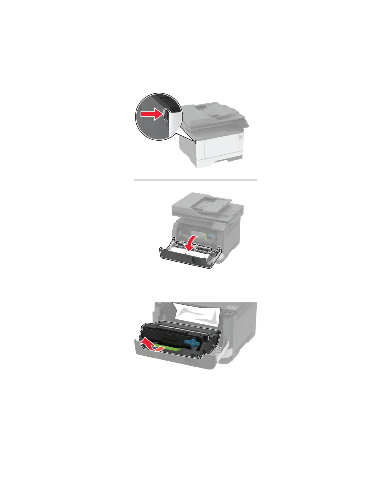 Warning—Potential Damage: Do not touch the photoconductor drum. Doing so may aect the quality of