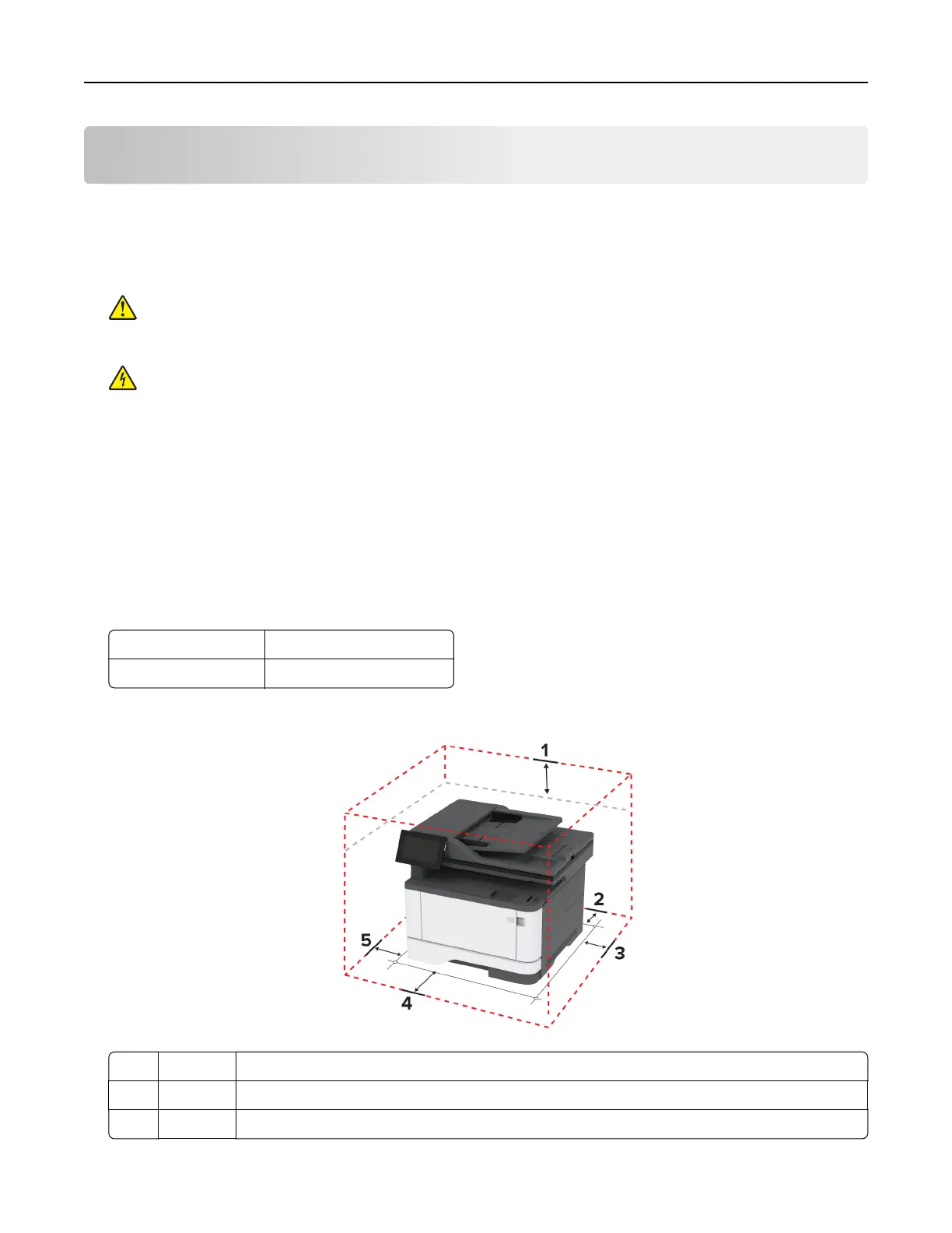• Allow the following recommended amount of space around the printer for proper ventilation: