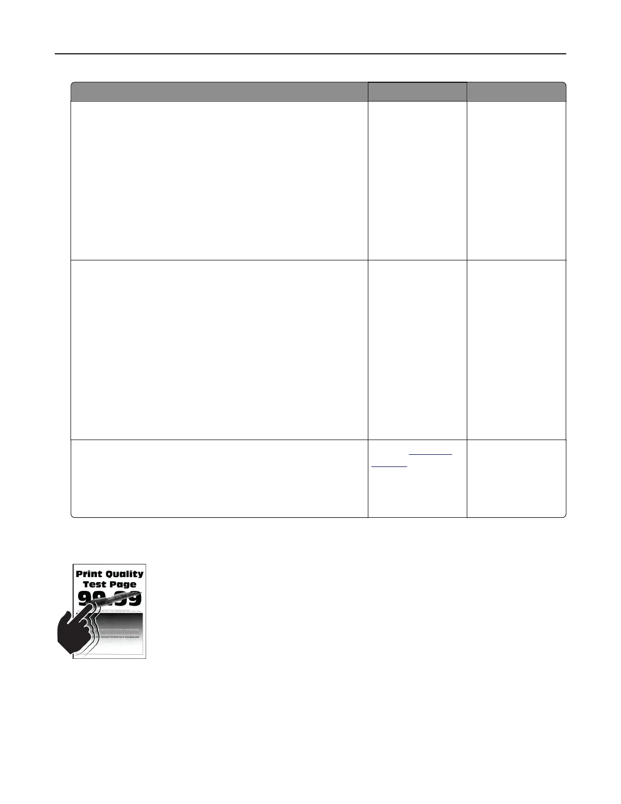 Note: Before solving the problem, print the Print Quality Test Pages. From the home screen, touch Settings >