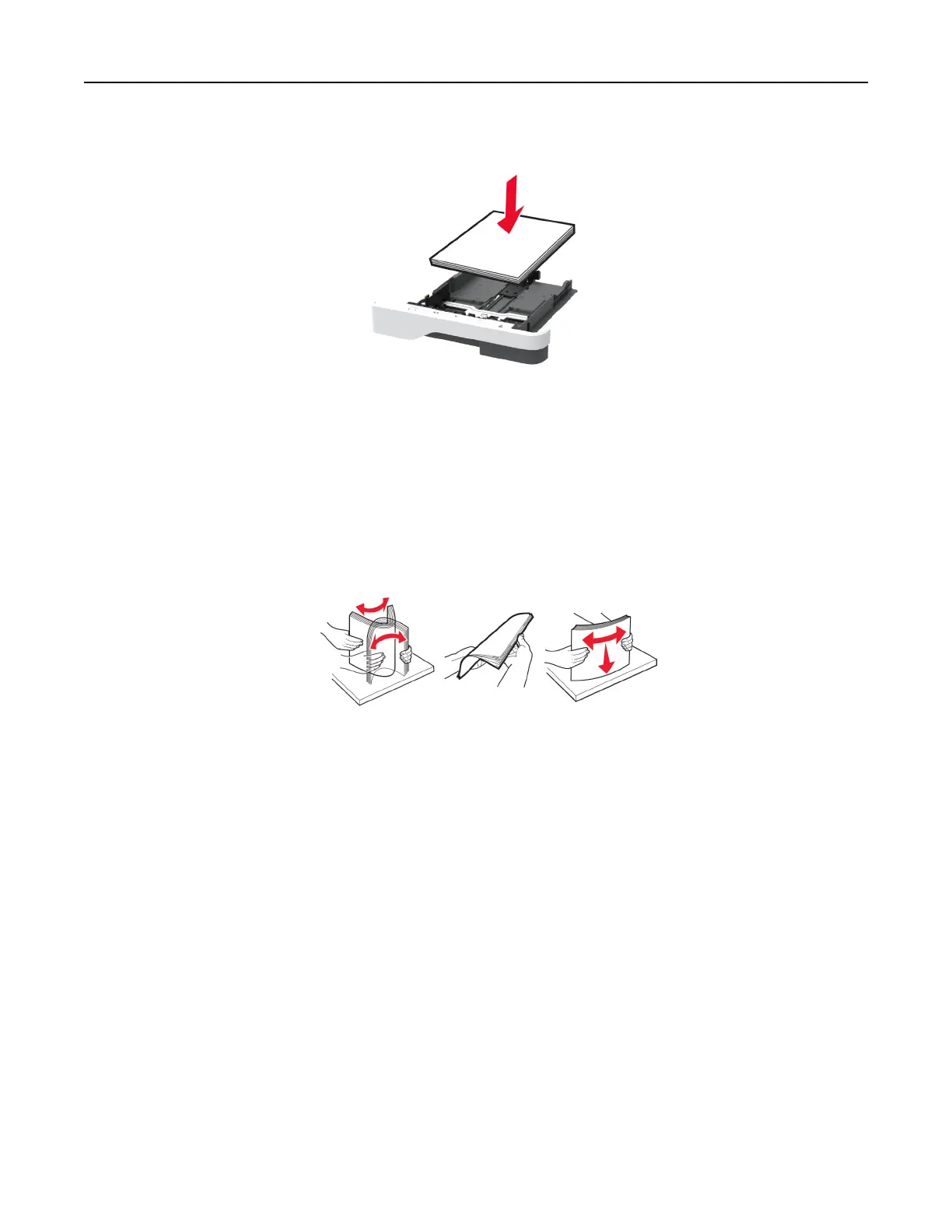 • Do not load paper that is wrinkled, creased, damp, bent, or curled.