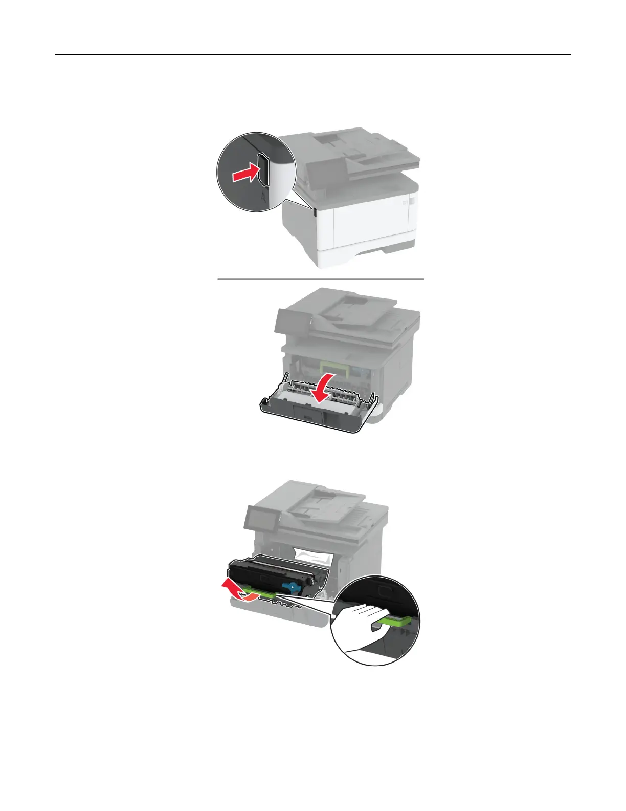 Warning—Potential Damage: Do not touch the photoconductor drum. Doing so may aect the quality of