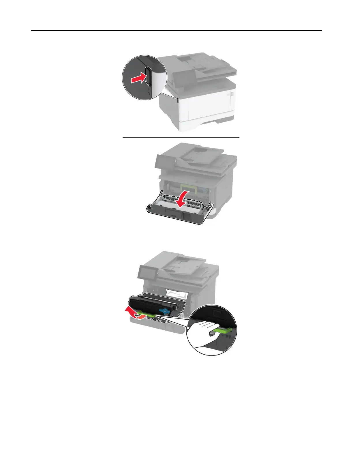 Warning—Potential Damage: Do not touch the photoconductor drum. Doing so may