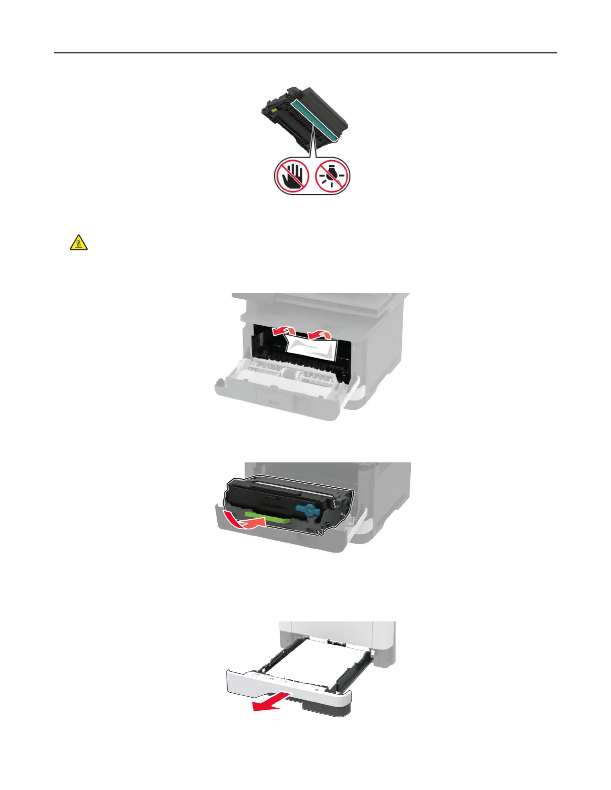 CAUTION—HOT SURFACE: The inside of the printer might be hot. To reduce the risk of injury from a