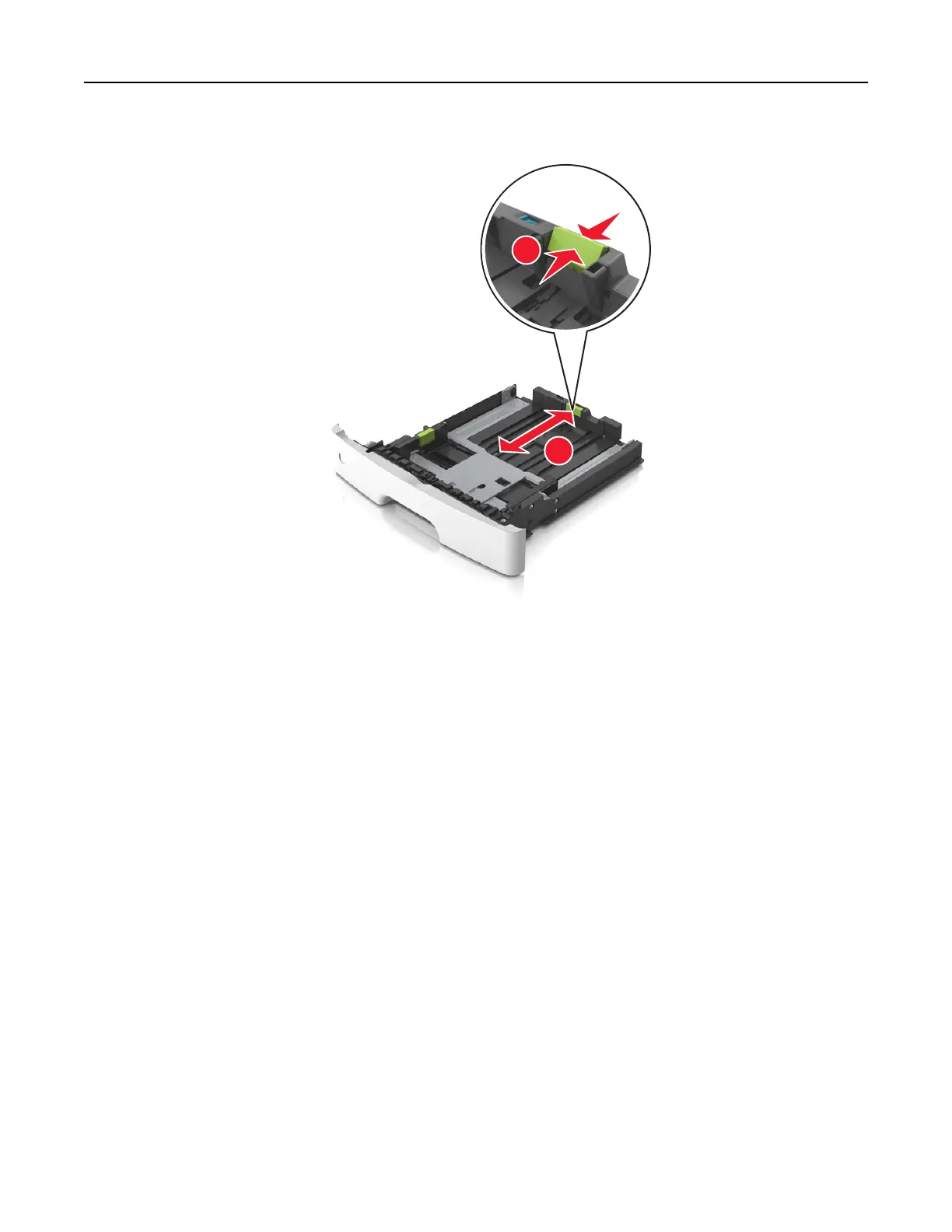 3 Squeeze and then slide the length guide tab to the correct position for the size of the paper you are loading.
