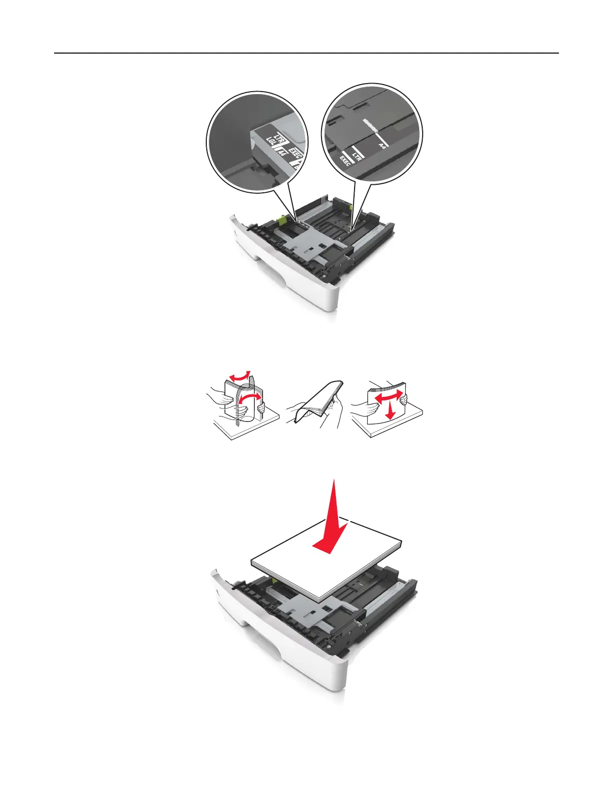 4 Flex the sheets back and forth to loosen them, and then fan them. Do not fold or crease the paper. Straighten