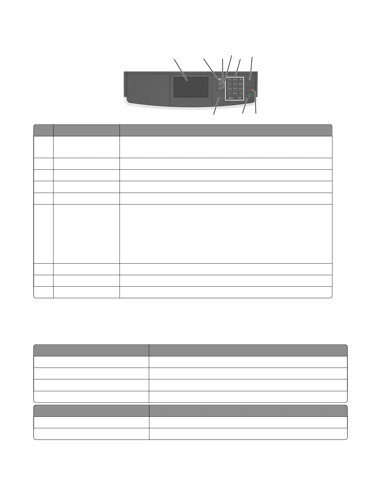 7 Stop or Cancel button Stop all printer activity.