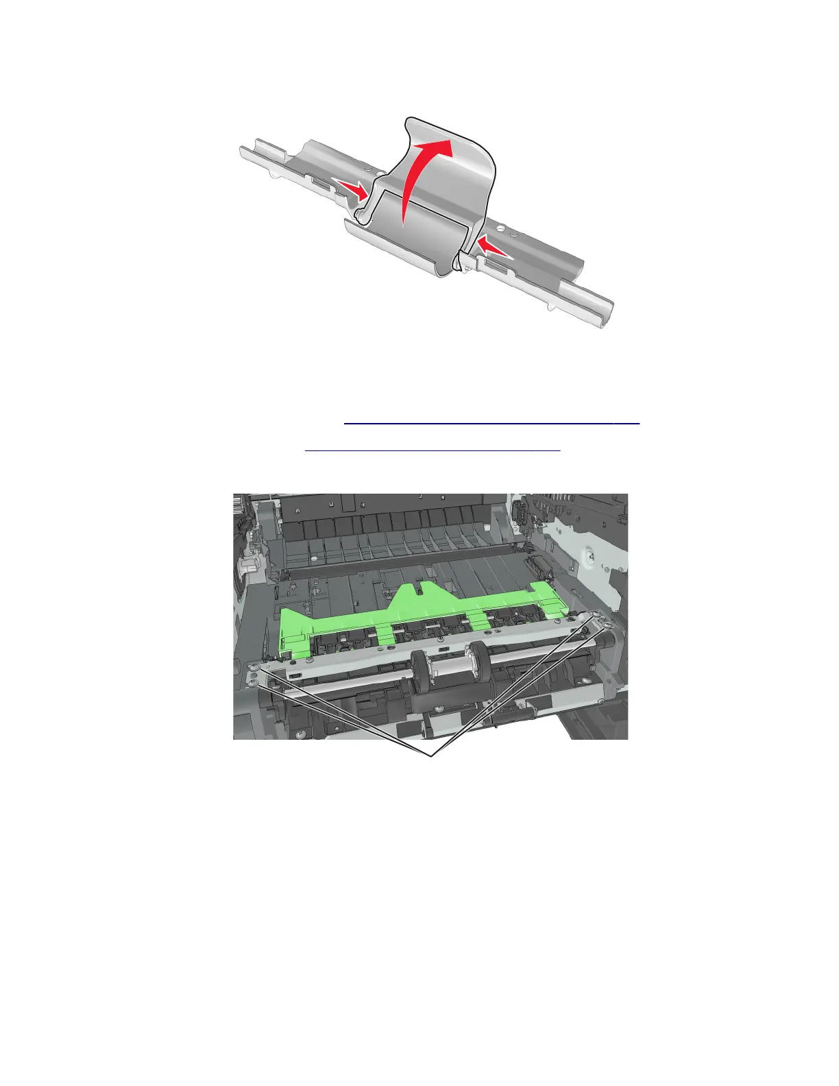 1 Remove the MPF pick roller cover. See “MPF pick roller cover removal” on page 329.