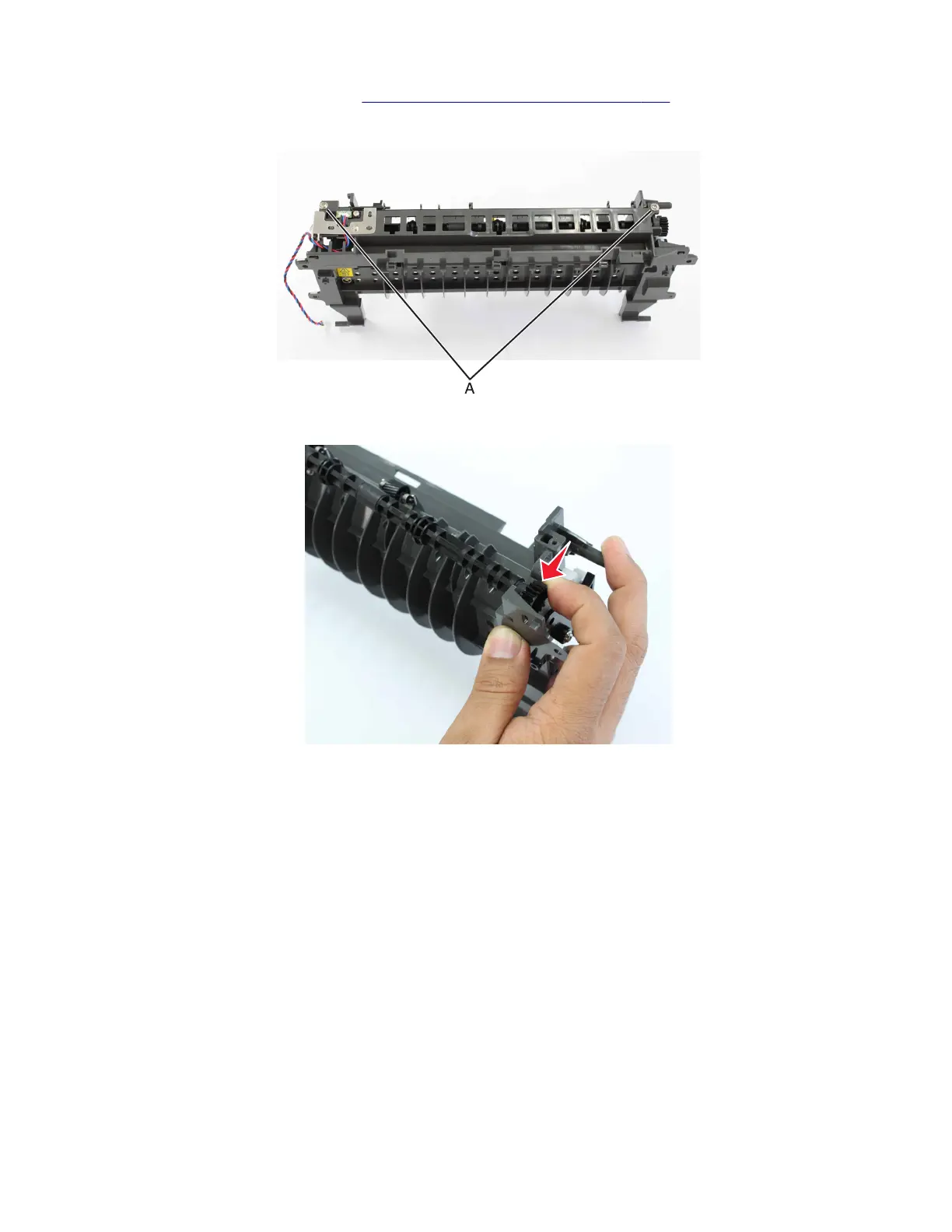 6 Remove the two screws (A), and then remove the top of the redrive assembly.