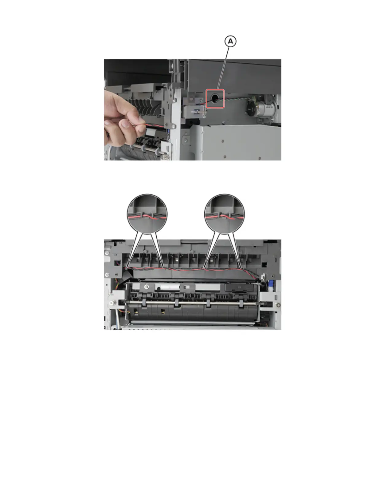 d Route the cable onto the redrive assembly. Make sure that the cable properly sits on the clamps.