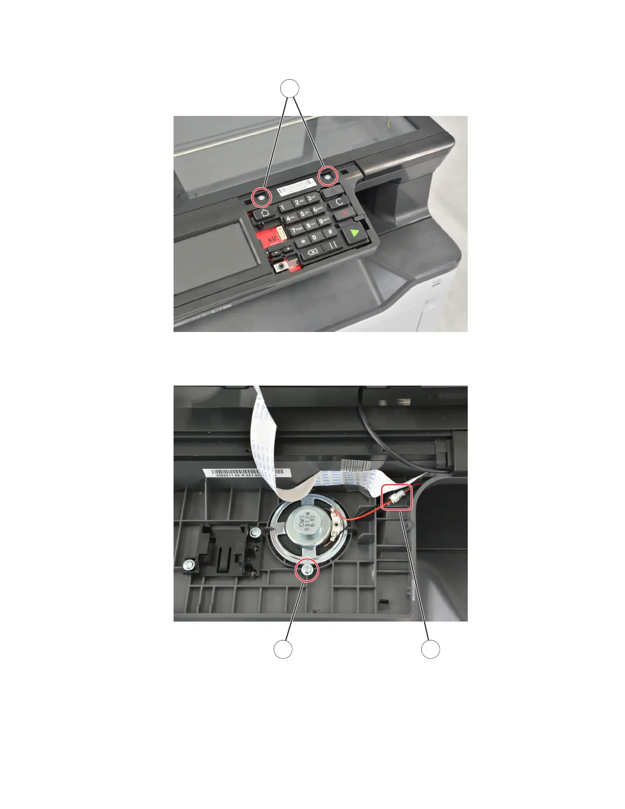 5 Remove the screw (B), and then disconnect the speaker cable (C).