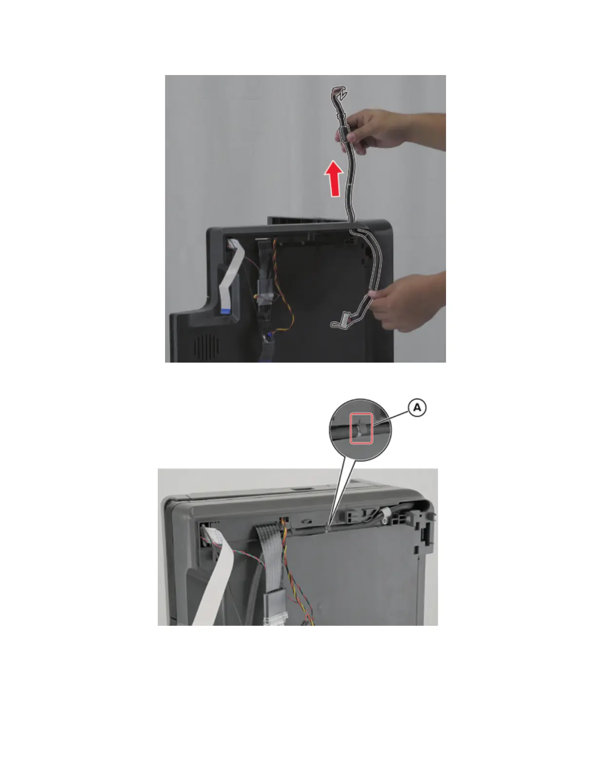 6 Release the cable from the clamps, and then remove it.