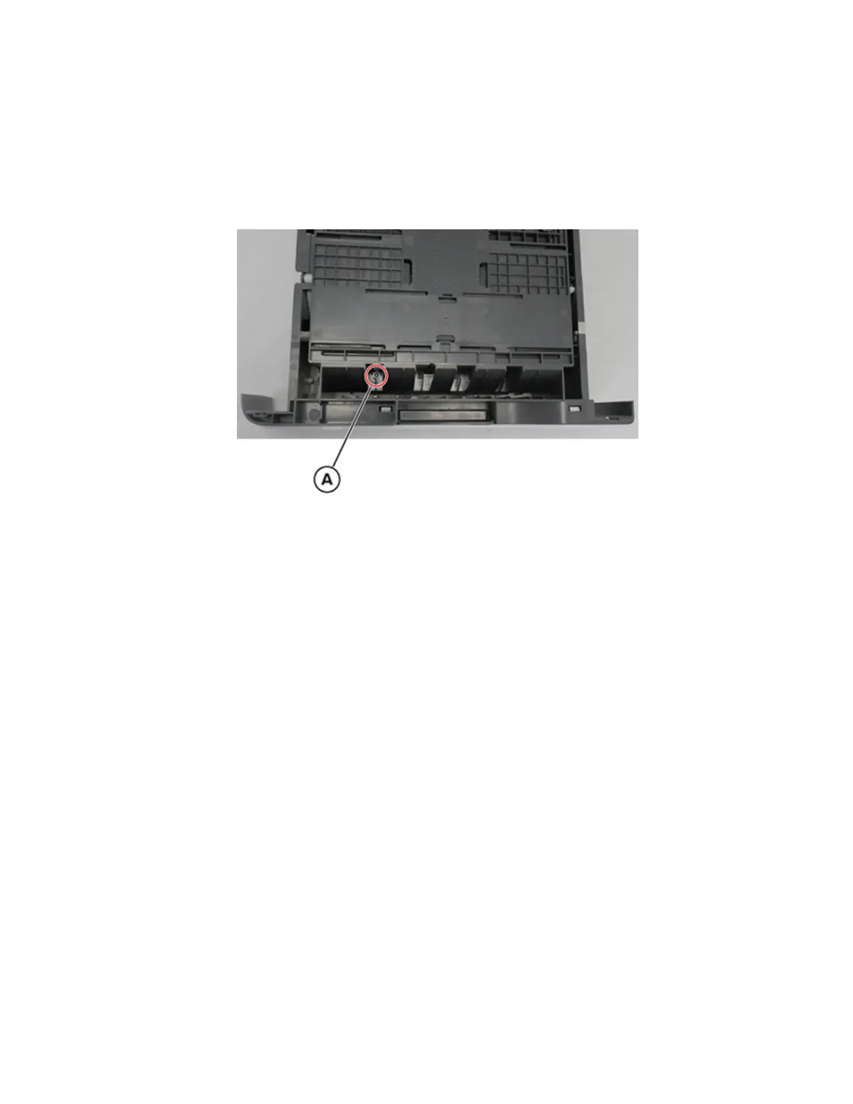 2 Under the tray, remove the screw (A).