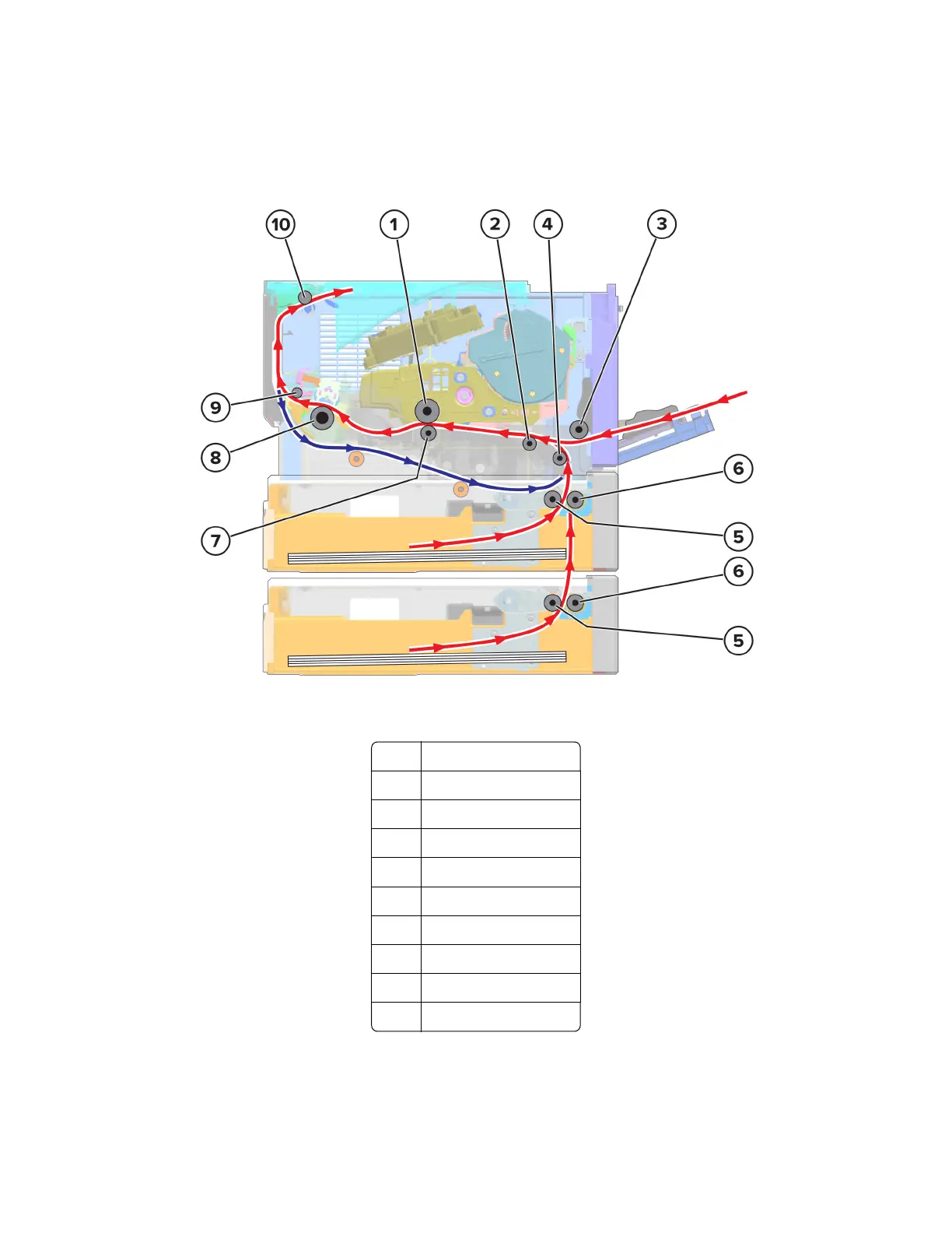 second input roller, which feeds it to the first input roller. For MPF print jobs, the MPF pick roller picks and feeds