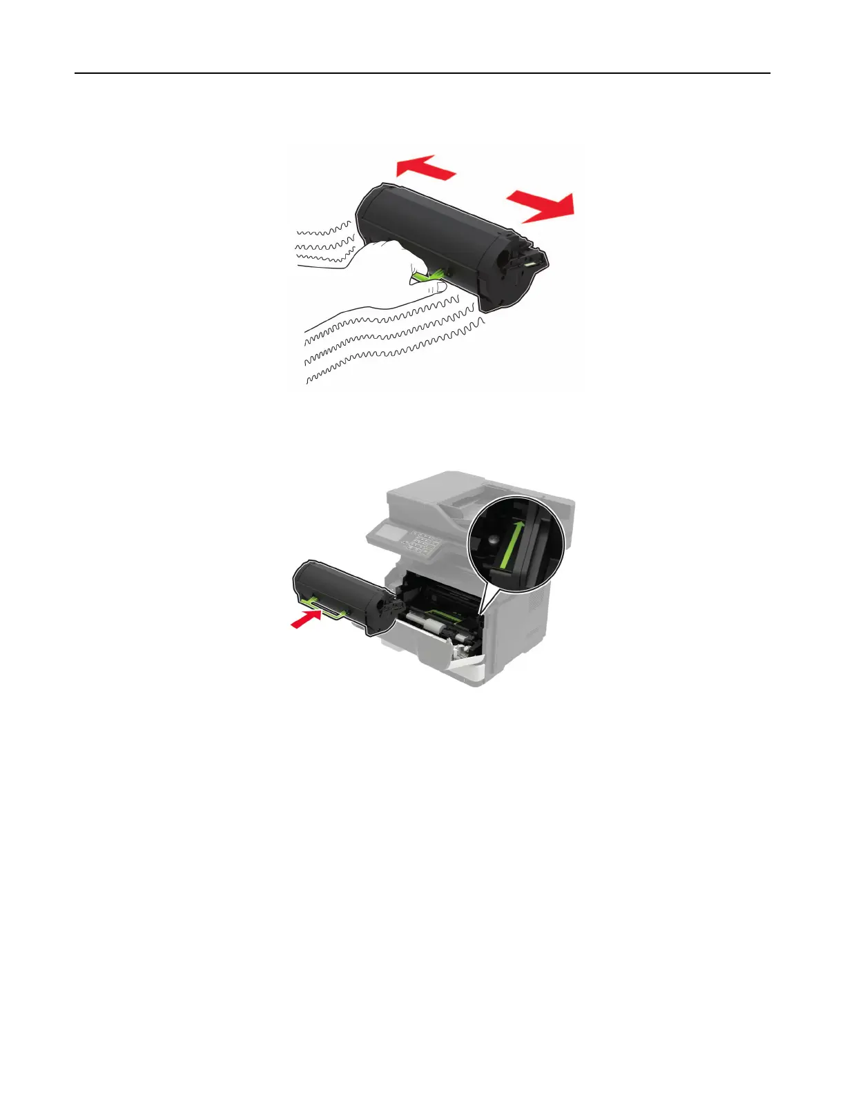 3 Unpack the new toner cartridge, and then shake it three times to redistribute the toner.