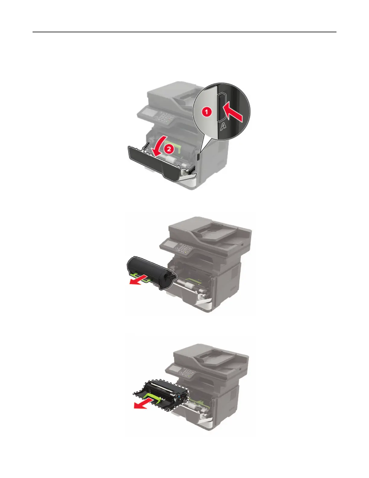 2 Remove the toner cartridge.