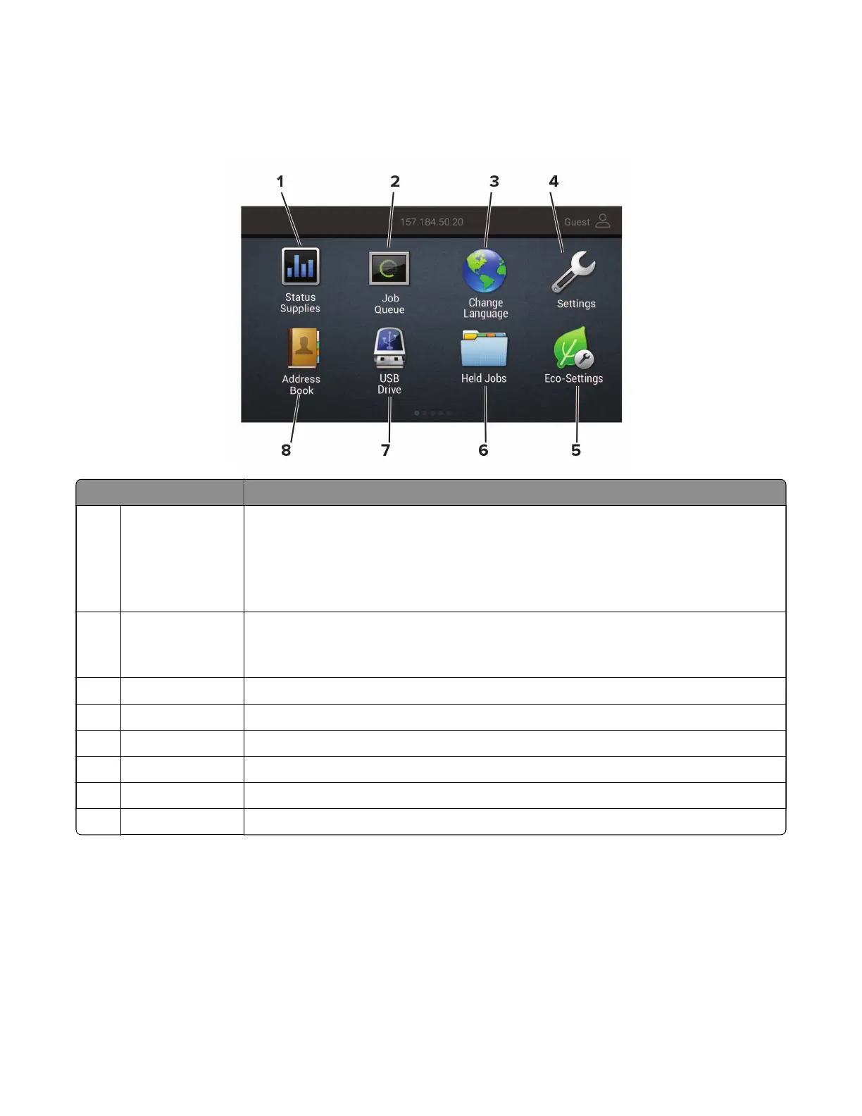 6 Held Jobs Show the print jobs that are held in the printer memory.