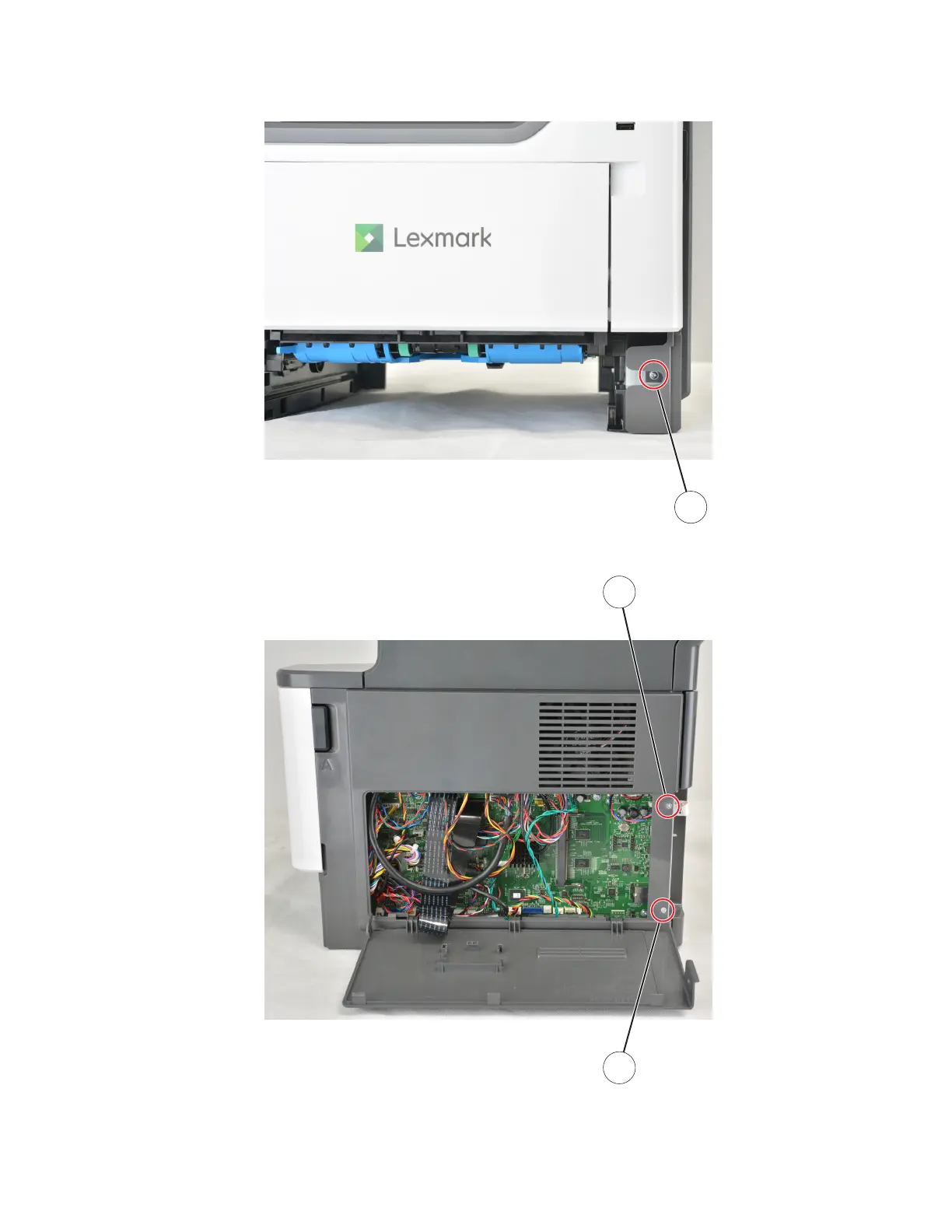 3 Remove the two screws (B).