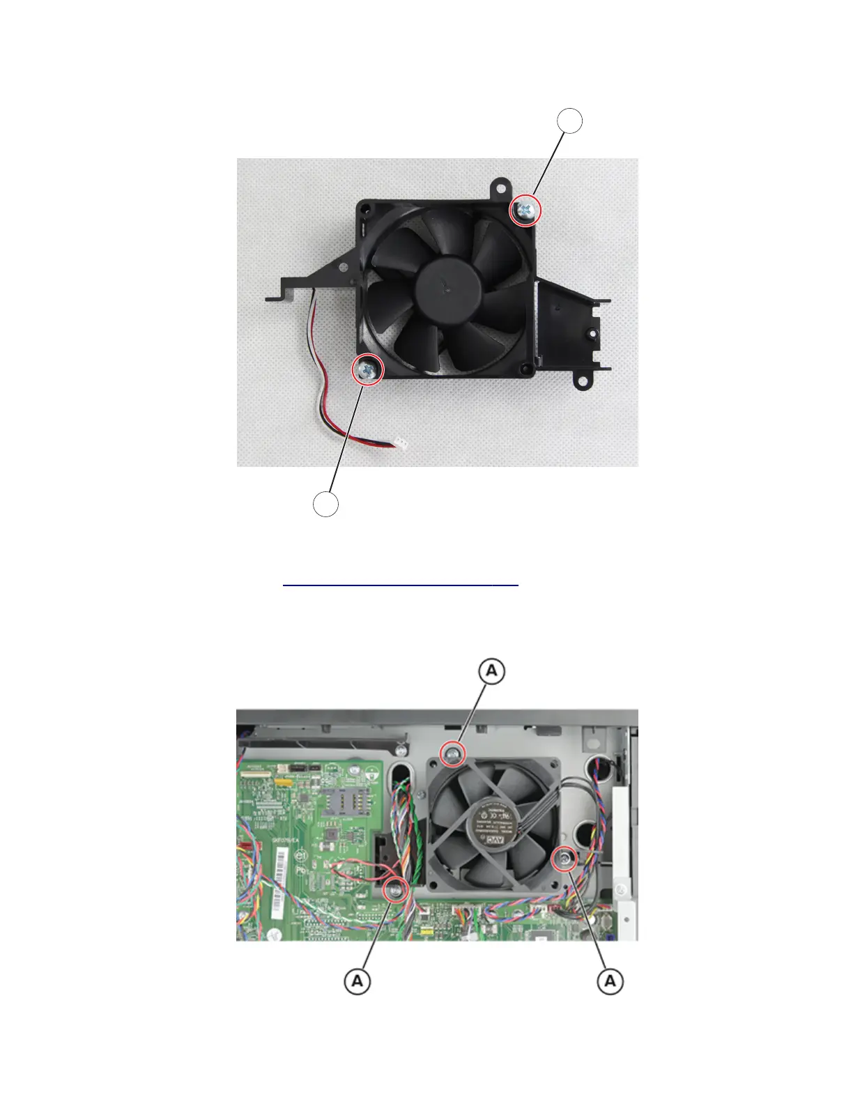 3 Remove the three screws (A), and then remove the fan duct.