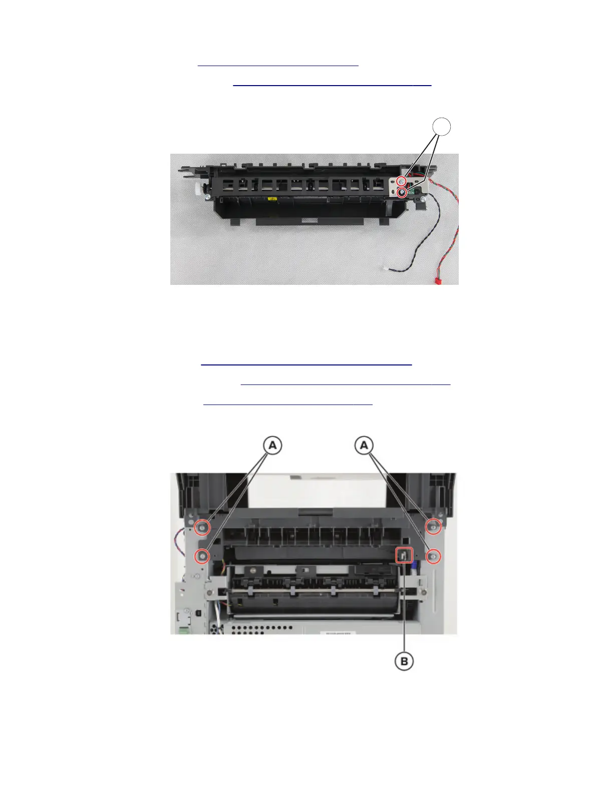4 Remove the four screws (A), and then disconnect the cable (B).