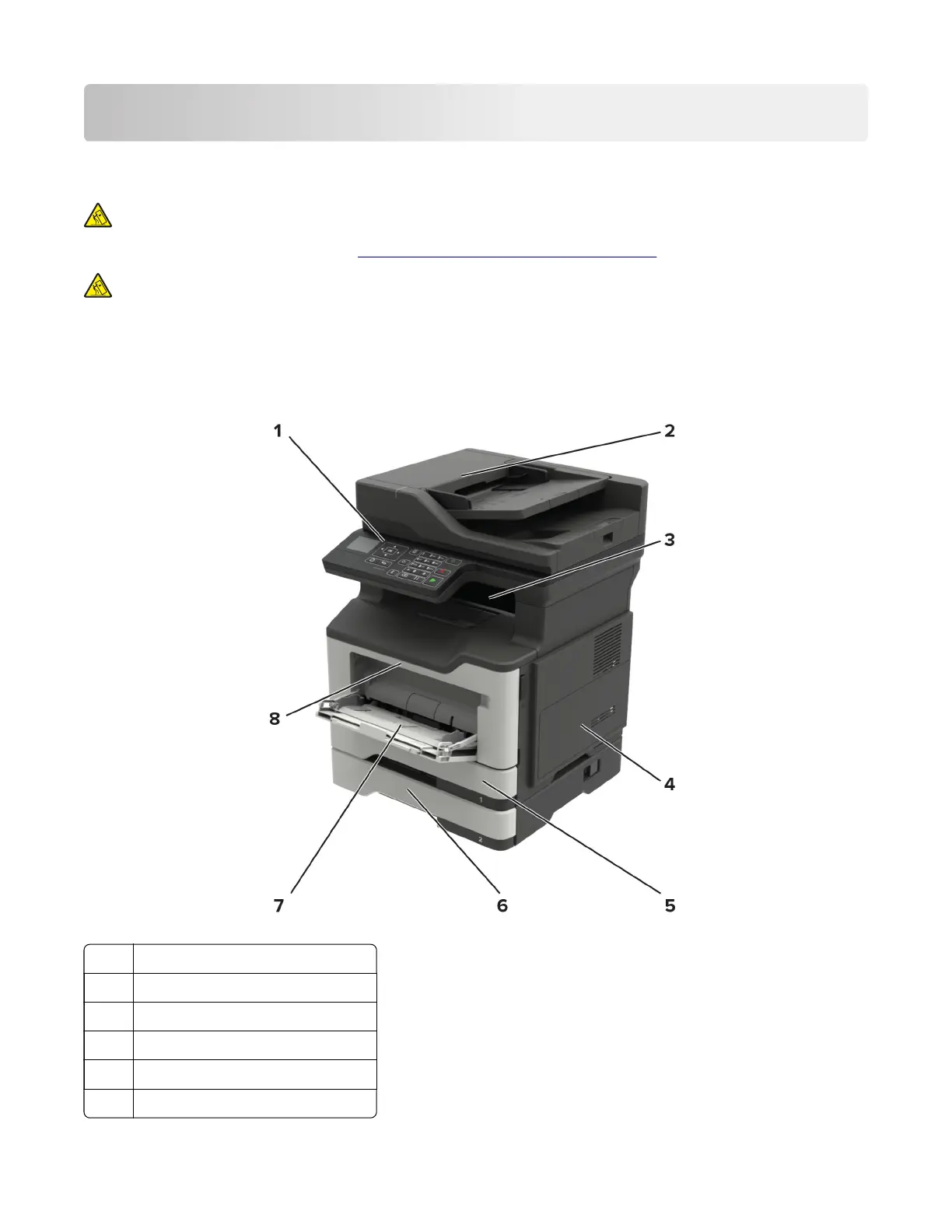 CAUTION—TIPPING HAZARD: Installing one or more options on your printer or MFP may require a