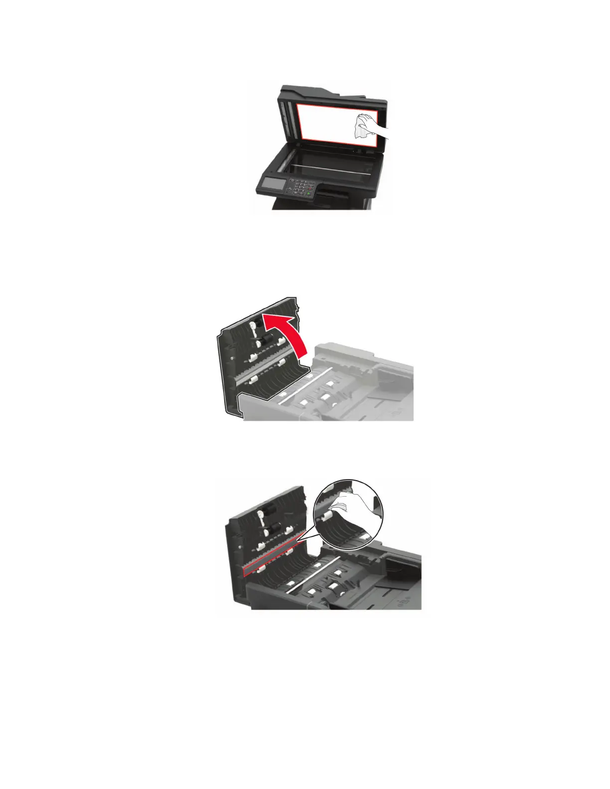 When using the MX521 and MX421 printers, do the following to clean the ADF:
