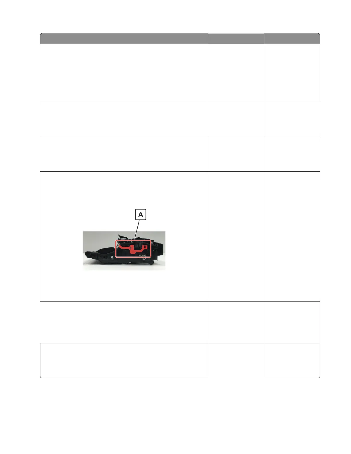 Check if a separator plastic (A), or a piece of it, is stuck inside the