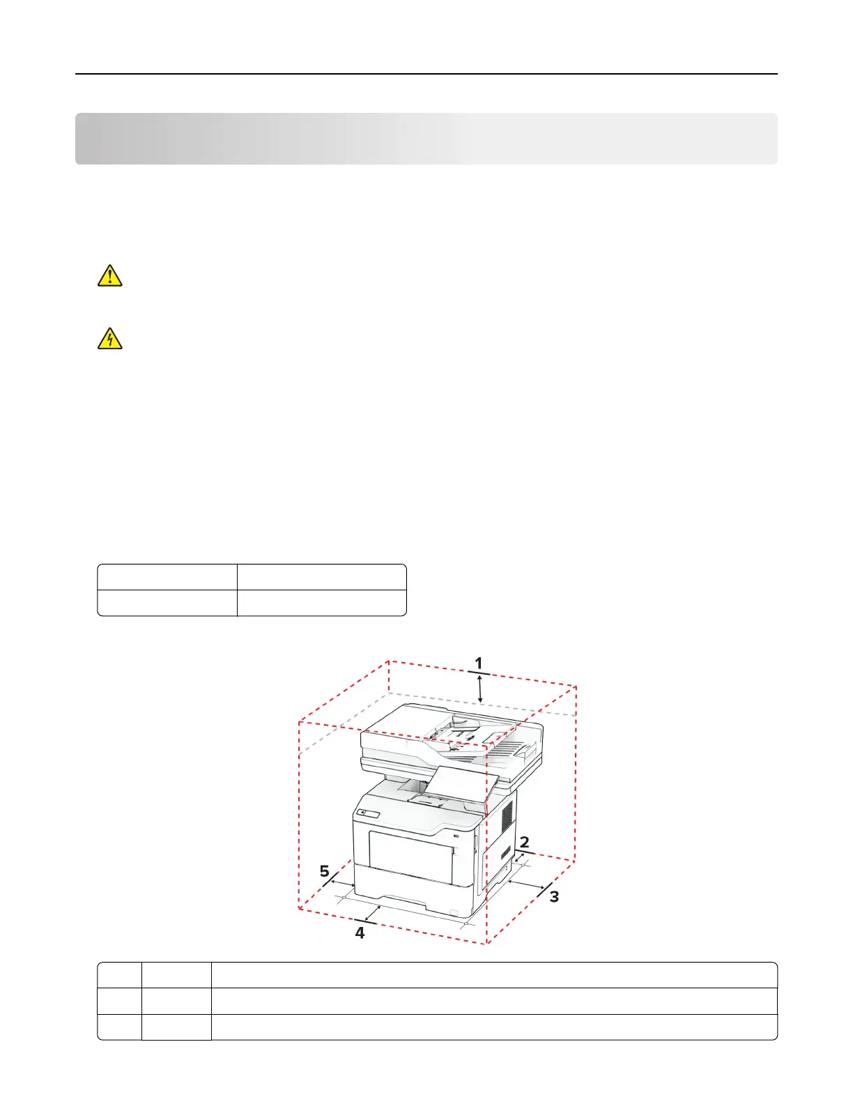 • Allow the following recommended amount of space around the printer for proper ventilation: