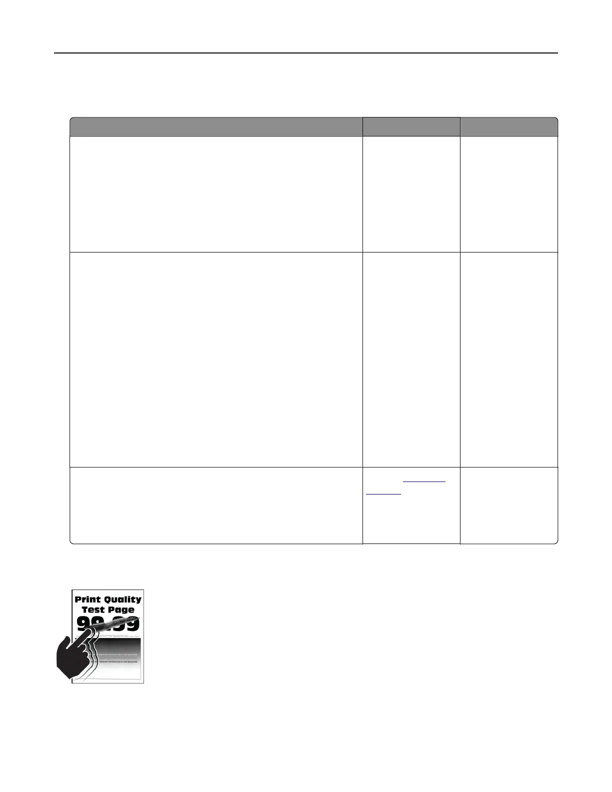 Note: Before solving the problem, print the Print Quality Test Pages. From the home screen, touch Settings >