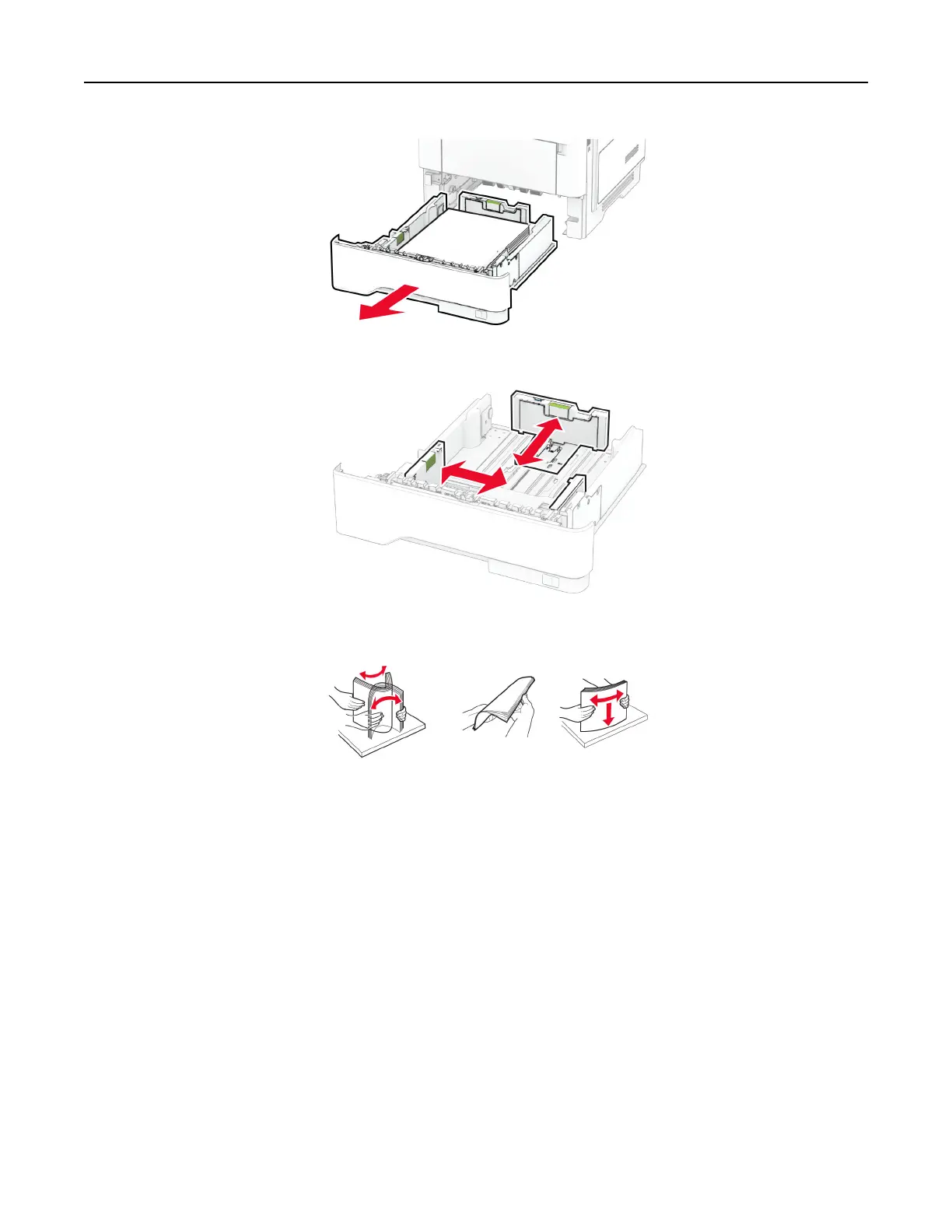 3 Flex, fan, and align the paper edges before loading.