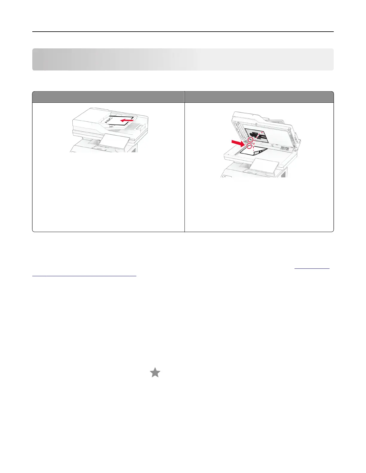 • Use the ADF for multiple‑page or two-sided